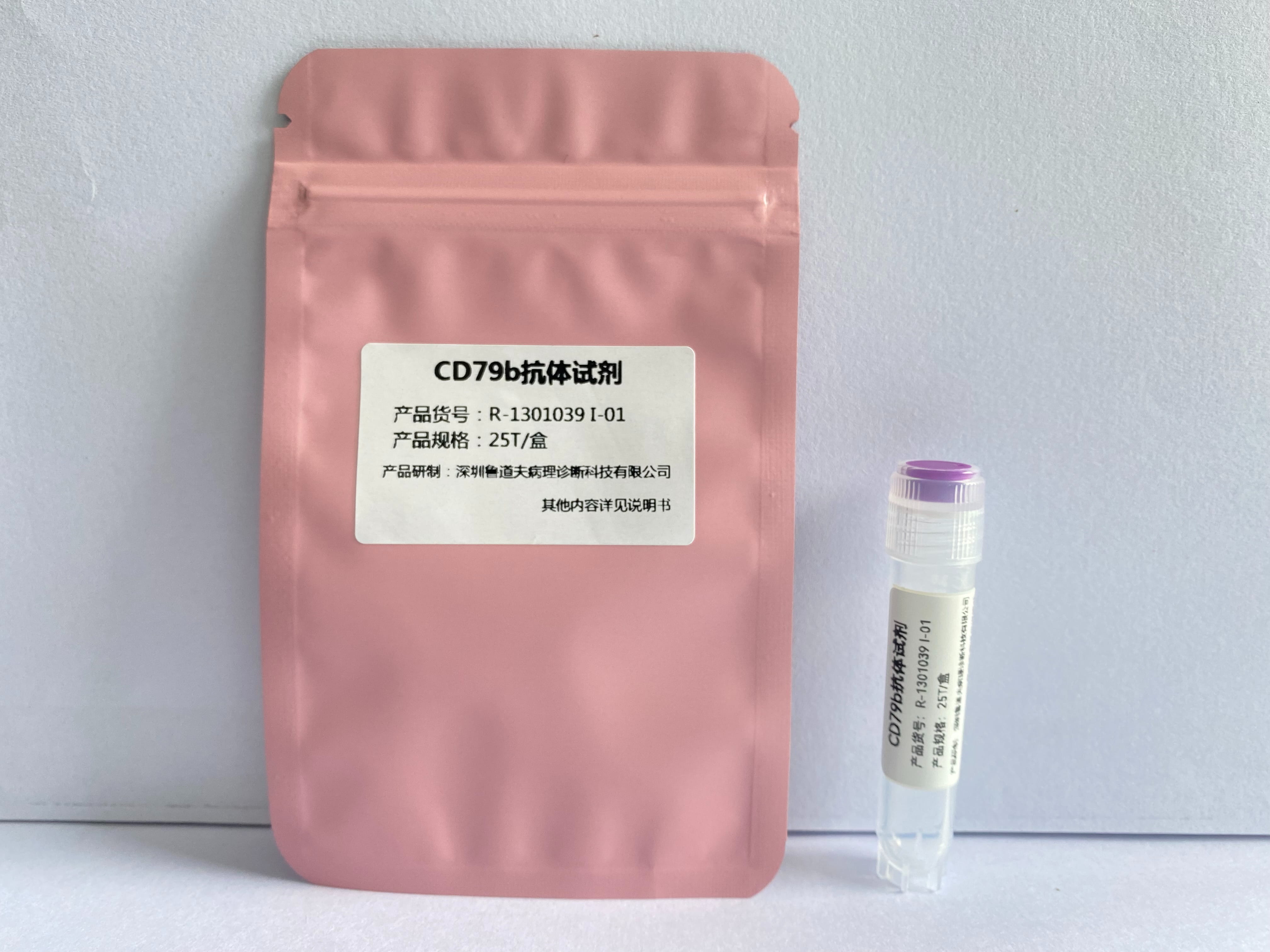 CD79b是正常或肿瘤化B淋巴细胞的特异性标记。抗CD79b单克隆抗体也与细胞质结合,无论是正常B淋巴细胞还是分化阶段的肿瘤B淋巴细胞都能检出CD79b。CD79b用于BCR缺失的免疫缺陷症的诊断,也可用于正常B淋巴细胞和肿瘤B淋巴细胞的鉴别。