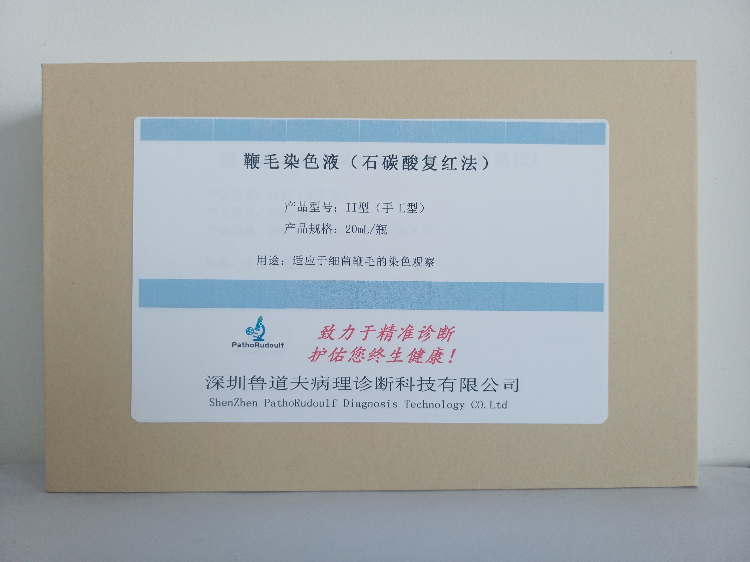 该鞭毛染色液采用石碳酸复红法,该染色法的优点是采用石碳酸复红作为核心染料,试剂比较稳定,操作简单,结果判断更可靠。