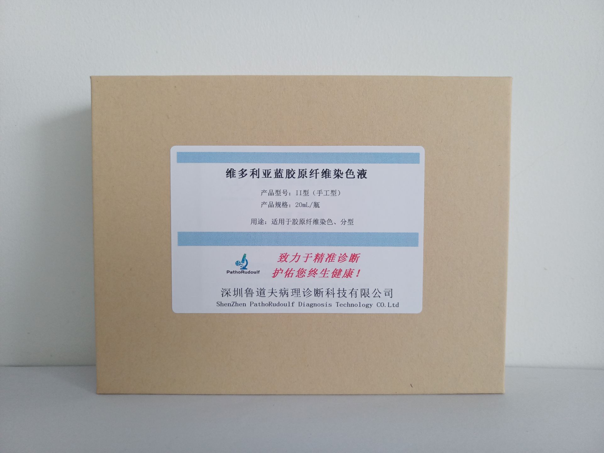 维多利亚蓝胶原纤维染色液主要由维多利亚蓝染色液、丽春红染色液组成,该染色液克服了VG染色易褪色和对比不明显的缺点,主要用于各种组织病变时对胶原纤维异常或纤维增生的研究中,在普通光学显微镜下心脏血管等组织的胶原纤维被染成红色。