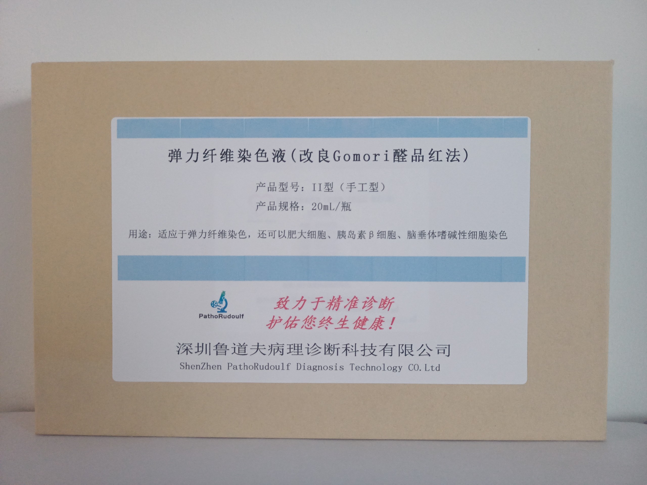 弹力纤维染色液(改良Gomori醛品红法)染色原理在于成熟的醛品红对特殊的蛋白质及含有硫酸根的黏多糖具有很强的亲和力,与弹力纤维结合的很好,该染液亦显示肥大细胞颗粒,脂褐素、嗜酸性细胞等。