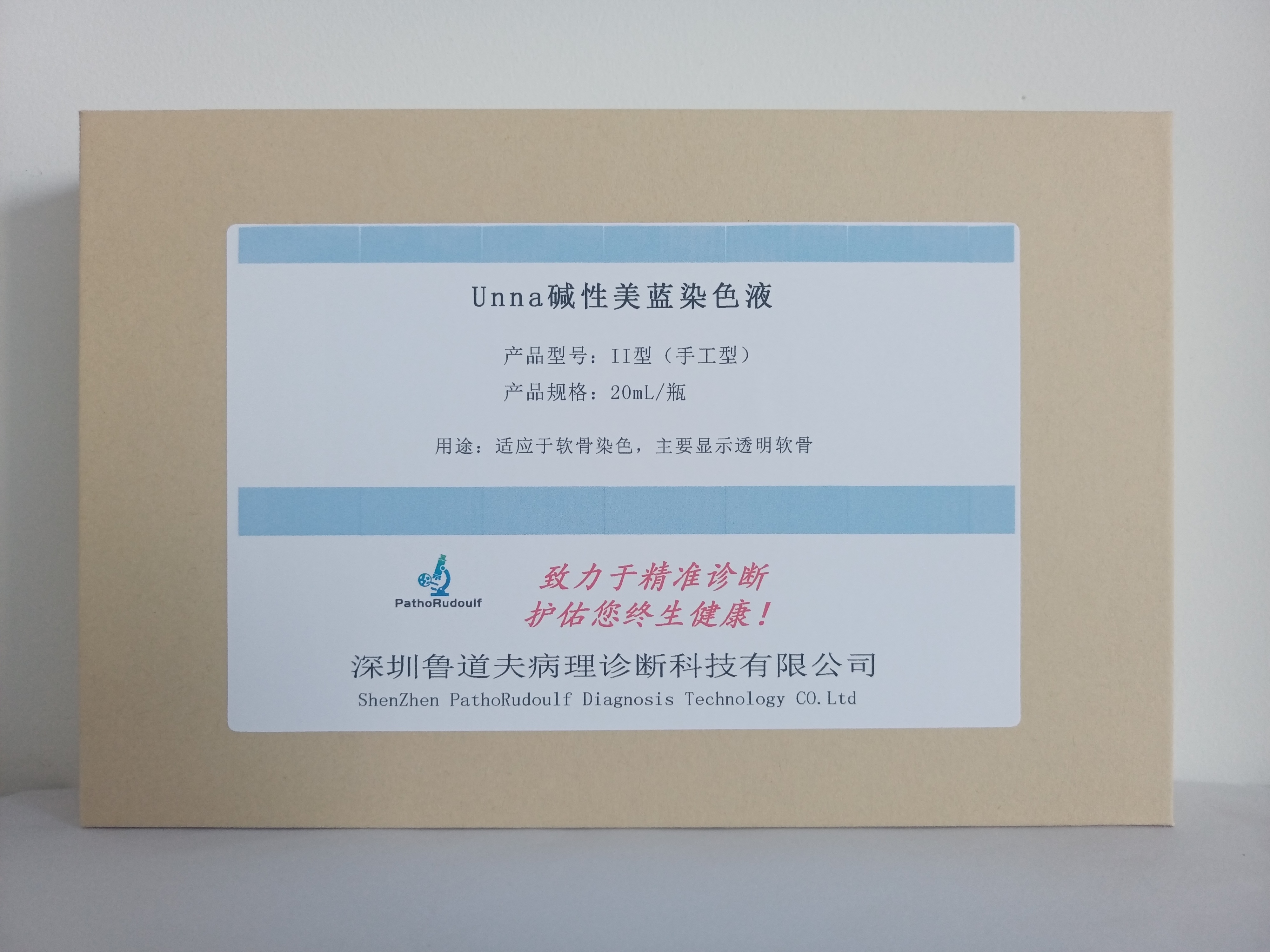 由碳酸钾、美蓝等组成。适用于软骨染色,主要显示透明软骨,此法为6-8个月胎儿指骨优选染色法,不脱钙石蜡切片也可染色。