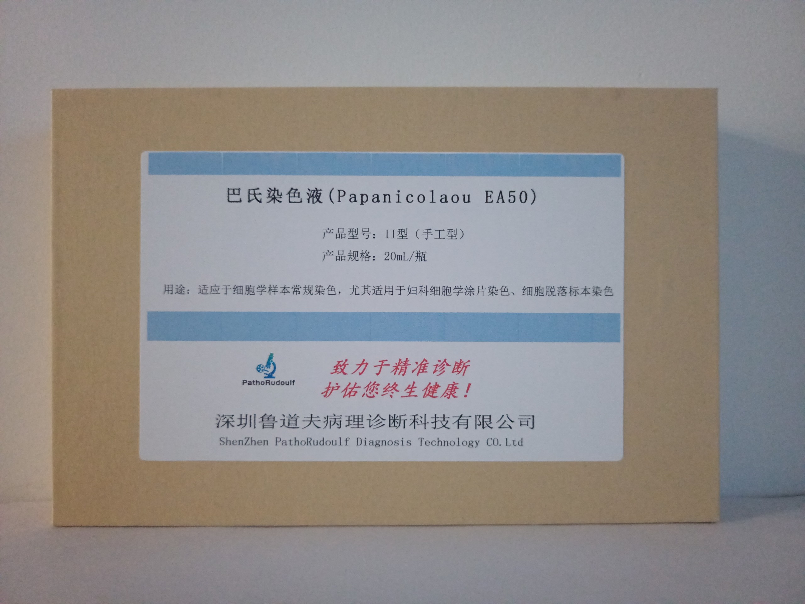 巴氏染色液(Papanicolaou EA50)细胞质染色采用EA50染色液,细胞核染色采用改良型苏木素染色液,不仅适用于妇科细胞学涂片染色如筛查宫颈癌和癌前病变,也适用于胸水、腹水、痰液等非妇科细胞样本的染色。