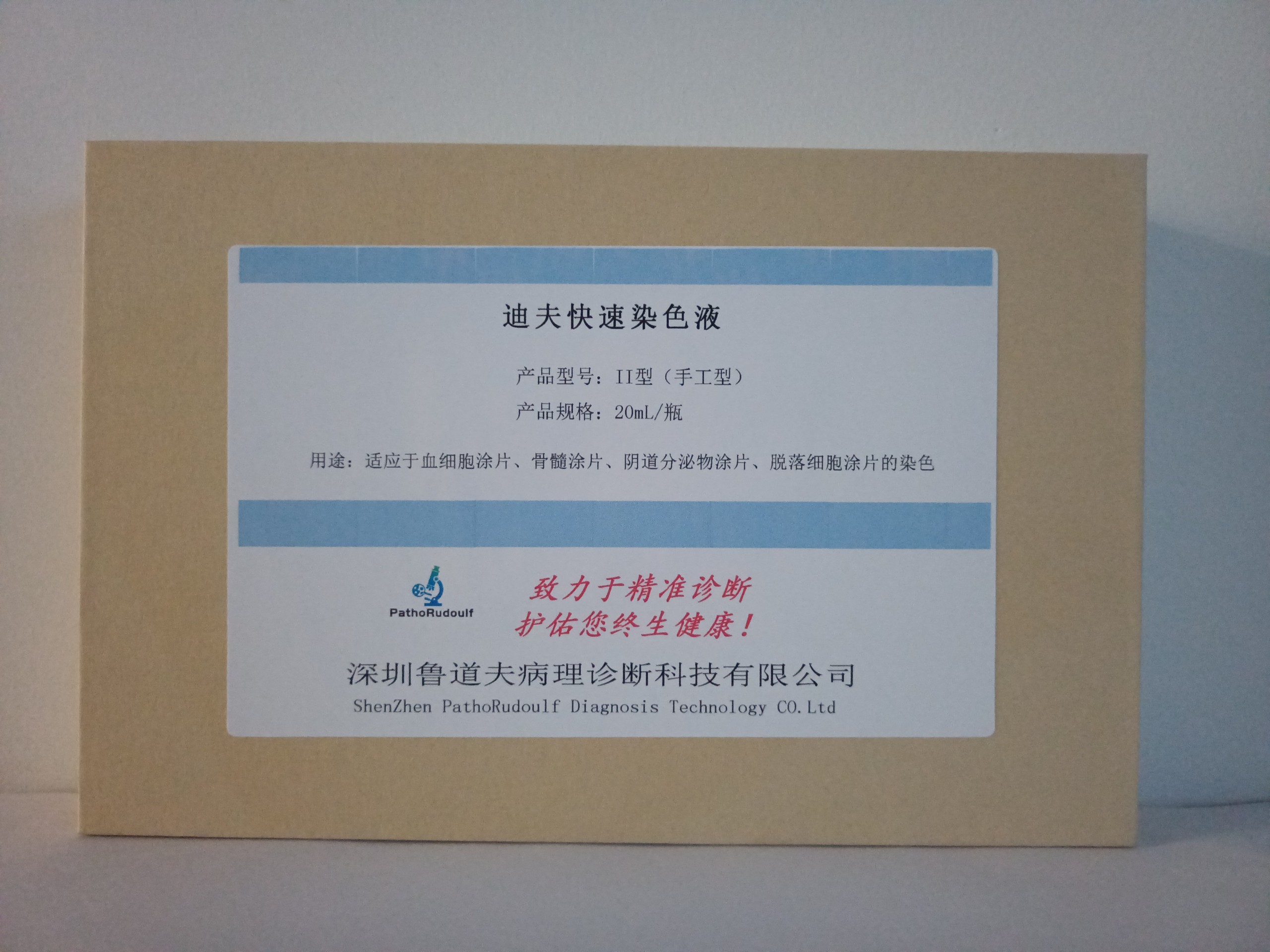 Diff-Quik染色是在Wright染色基础上改良而来的一种快速染色方法,是细胞学检查中常用的染色方法之一,染液是采用世界卫生组织(WHO)推荐的快速染色方法而配制,与Wright Stain类似都是利用Romanowsky Stain技术原理改良而来的,染色结果与瑞氏染色液也极其相似,但迪夫快速染色所需的时间极短,一般90s以内即可完成染色。
