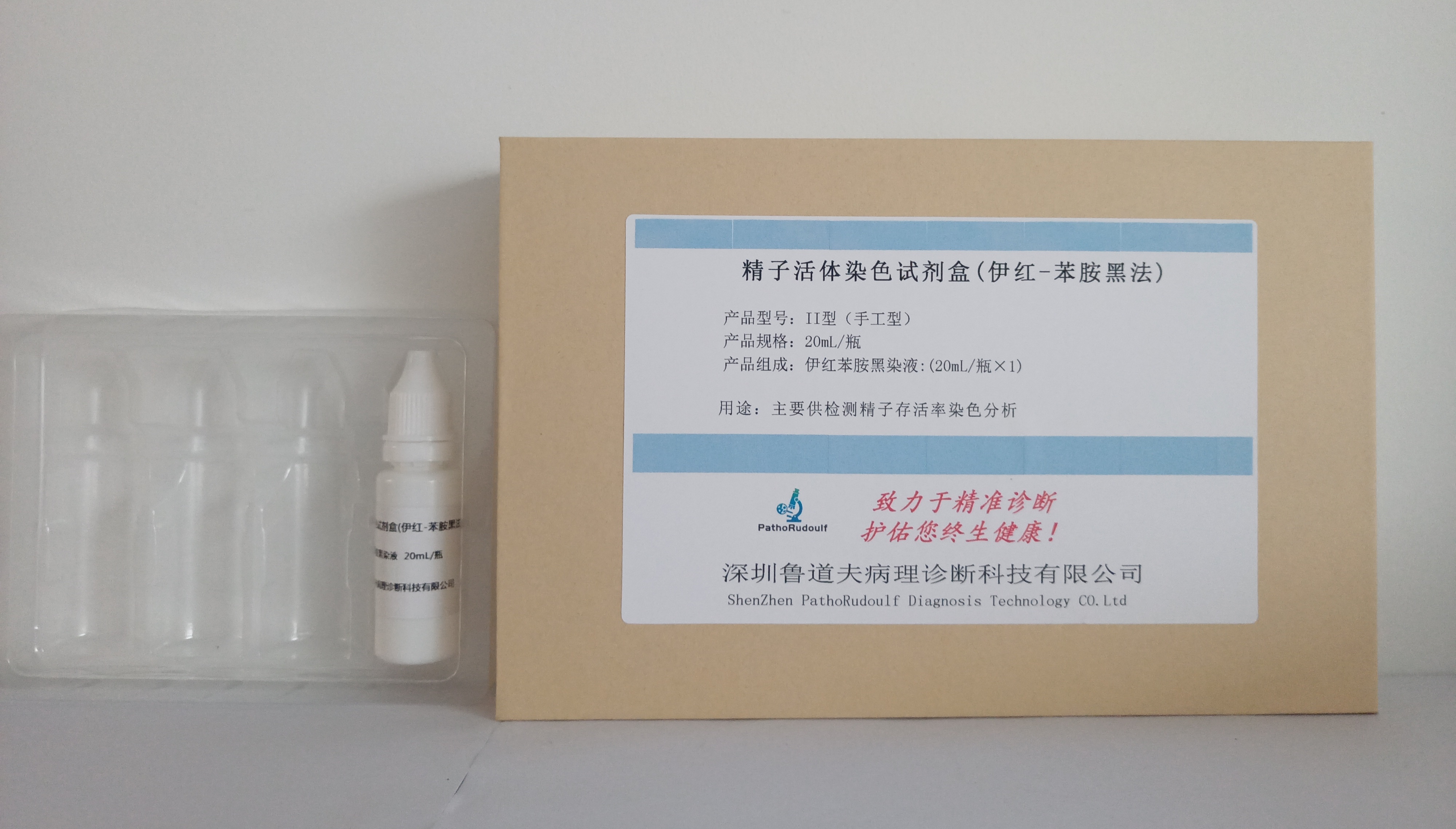 精子活体染色试剂盒(伊红-苯胺黑法)可以常规检测所有精子标本的存活率,通过染料拒染法来鉴别细胞膜完整的精子,从而得出活精子的百分率,该染色液由伊红染色液、苯胺黑染色液组成,利用染料拒染原理,即相关基于损伤的细胞膜,如在非活的(死)细胞上的膜,允许非透过膜性染料可进入膜内染色;而活细胞的细胞膜能够抗拒染料进入,产生拒染现象,不着色。