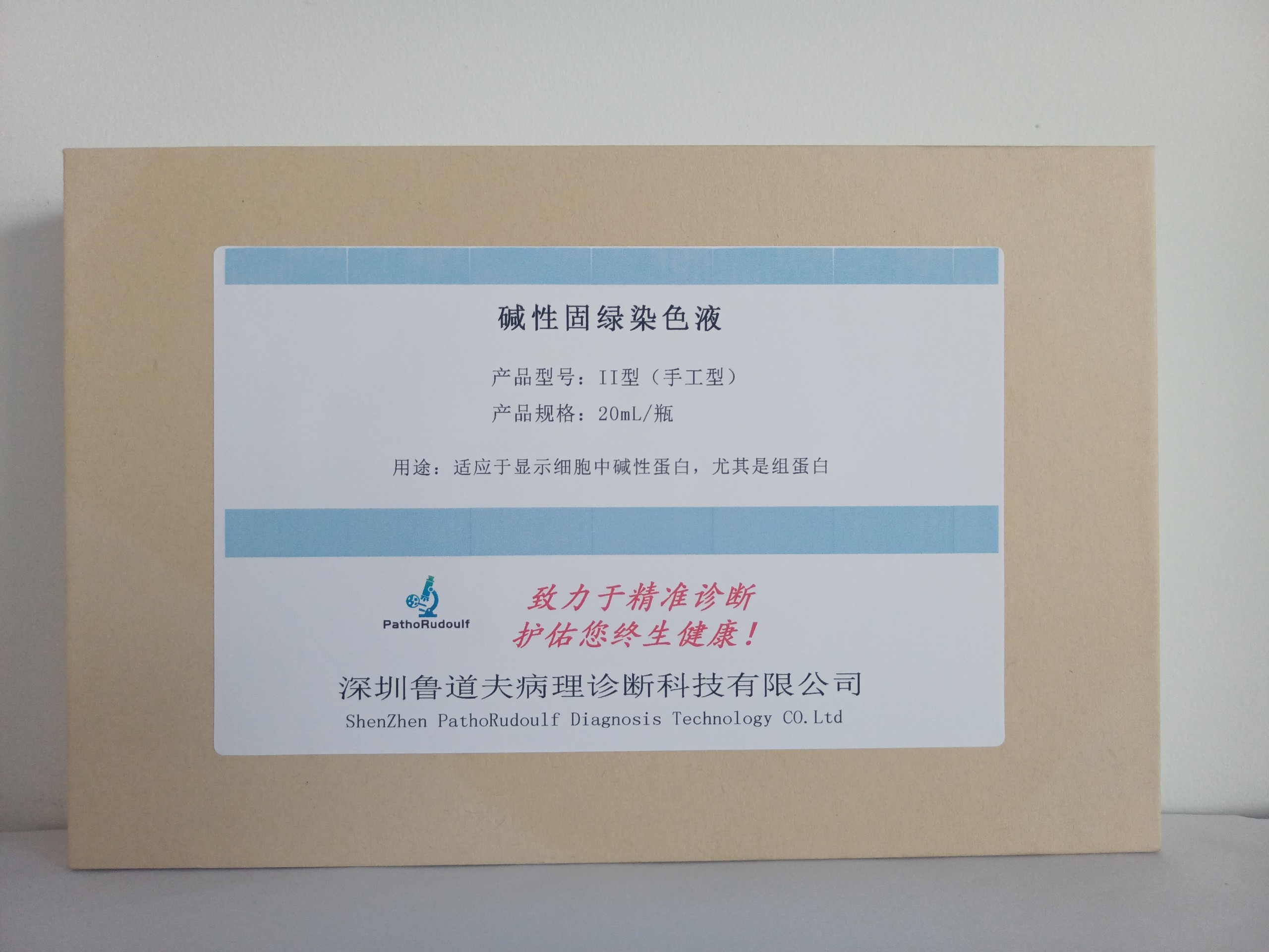 碱性固绿染色液是利用碱性蛋白质与带有负电荷的碱性染料固绿结合进行染色,细胞中含量丰富的碱性蛋白为组蛋白,主要存在于细胞核中,因此染色后细胞核大部分被染成绿色。
