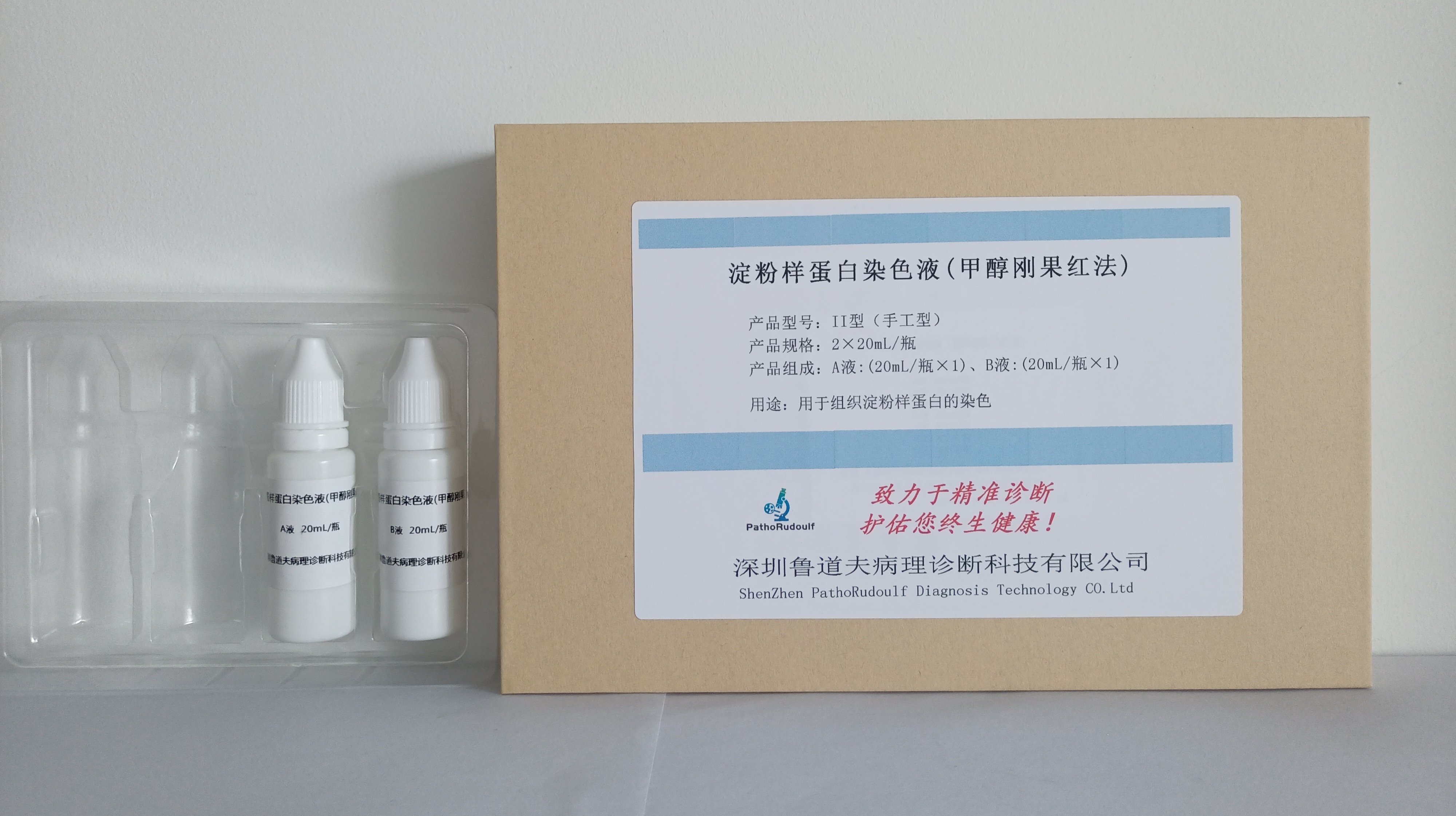淀粉样物质是一种无固定形状的细胞外嗜酸性物质,可存在于不同的组织、器官,导致的疾病称为淀粉样变.淀粉样物质主要是由蛋白质构成,该蛋白大部分排列成反向的β-折叠层结构,在电子显微镜下淀粉样物质呈原纤维排列,病例材料中为大量细胞外的不分支的细丝,大多随机排列。用于识别淀粉样物质的组织学方法有甲紫染色、刚果红染色、偏振光显微镜观察等,目前研究发现传统的甲紫染色法灵敏度低、特异性差,经典的而且有效的方法是刚果红染色,1922年Bennhold发现了刚果红可以用于活体内淀粉样物质的鉴别,并应用到组织切片。后来经过Highman改良,染色效果更好。