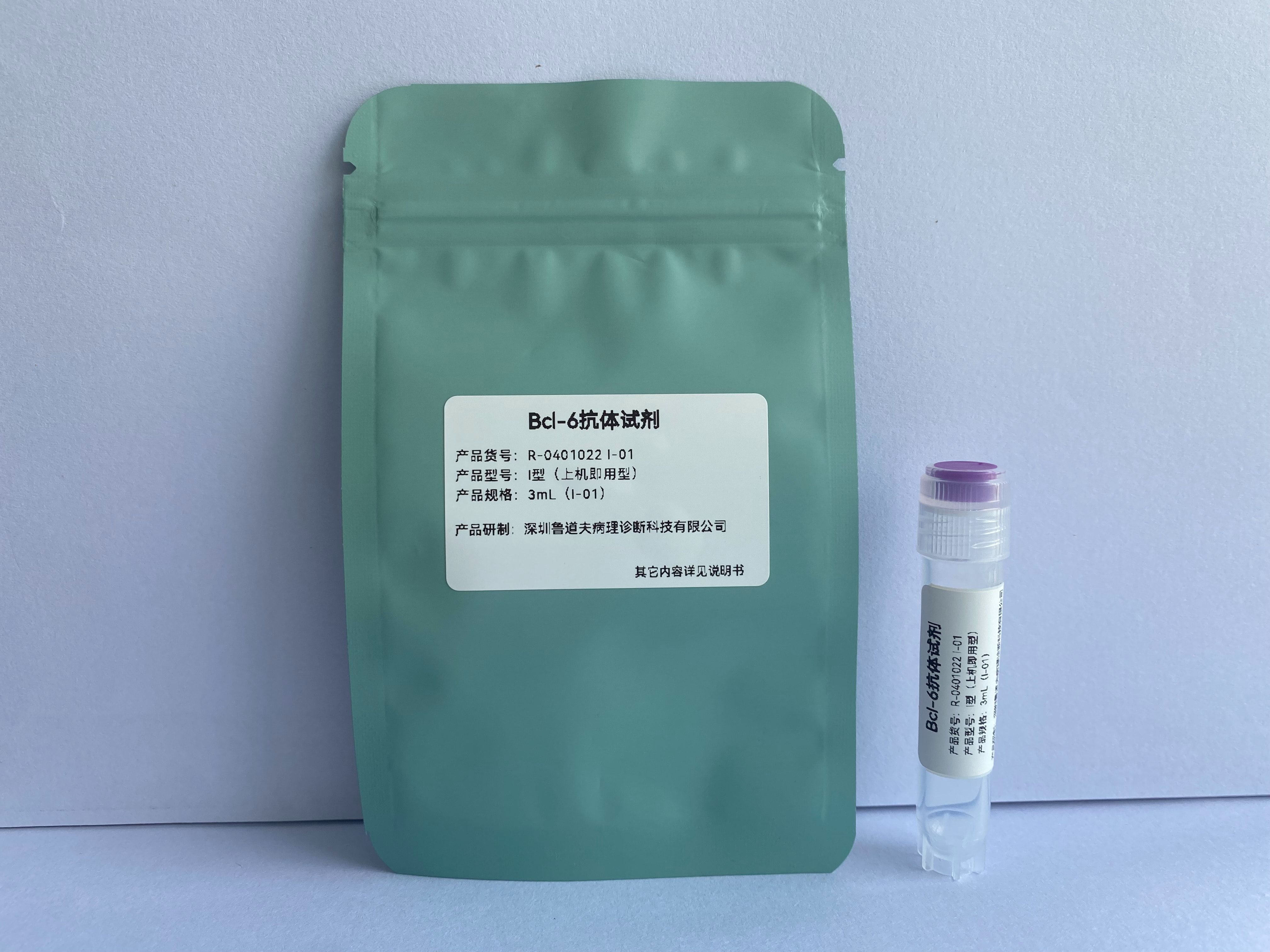 Bcl-6抗体试剂可与Bcl-6分子抗原特异性结合,含Bcl-6抗体试剂的免疫组化试剂盒适用于滤泡性淋巴瘤、弥漫性大B细胞淋巴瘤、Burkitt's淋巴瘤以及结节性淋巴细胞为主的何杰金氏淋巴瘤的精准诊断。