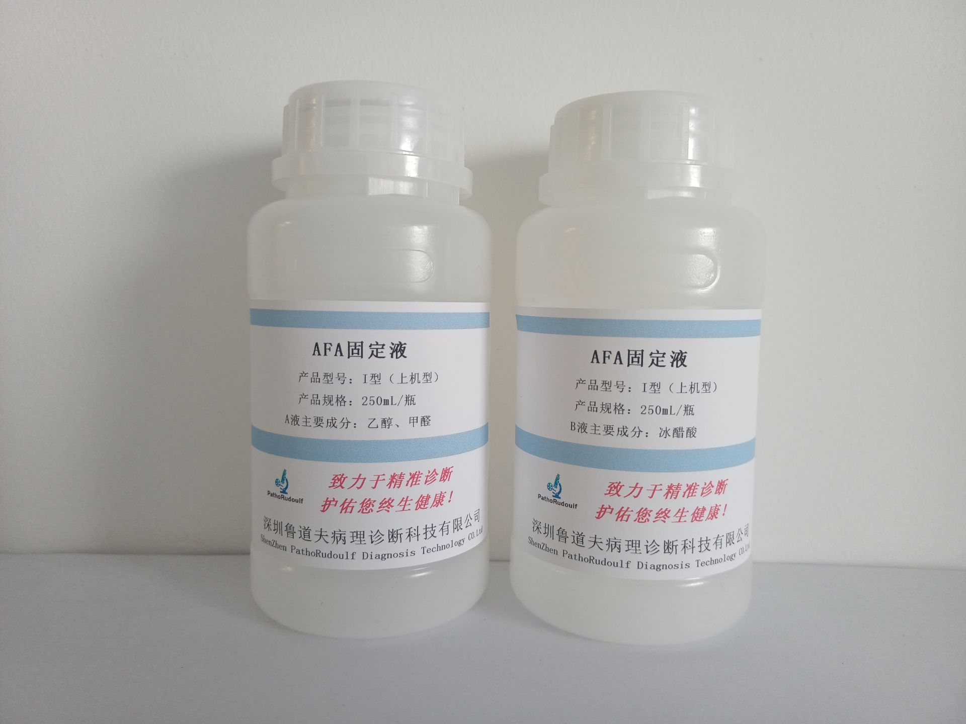 原理:AFA固定液通过A液(乙醇-甲醛混合液)和B液(冰醋酸)的协同作用实现快速固定。乙醇迅速渗透组织使蛋白质变性凝固,甲醛通过交联作用稳定蛋白质结构,冰醋酸则能增强固定液的穿透力并调节pH值,三者协同作用可在短时间内完成对组织的固定。