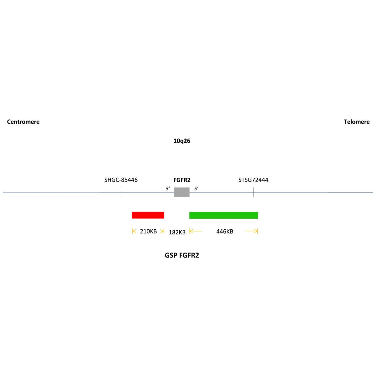 2020年,美国FDA批准针对FGFR2融合或其他重排类型(经FDA批准的检测产品)的胆管癌靶向药物pemigatinib上市,用于治疗携带FGFR2基因融合的局部晚期或转移性胆管癌(CCA)成人患者。胆管癌中FGFR2融合伙伴基因众多,涉及到19个基因,设计成断裂探针简单直观。但需注意,与FGFR2所在的10q26有四个基因相距较近,约6Mb以内距离,用FGFR2断裂探针检出红绿可能分不开而误判为阴性。碰到若即若离的红绿间距时,需用NGS方法来相互验证。