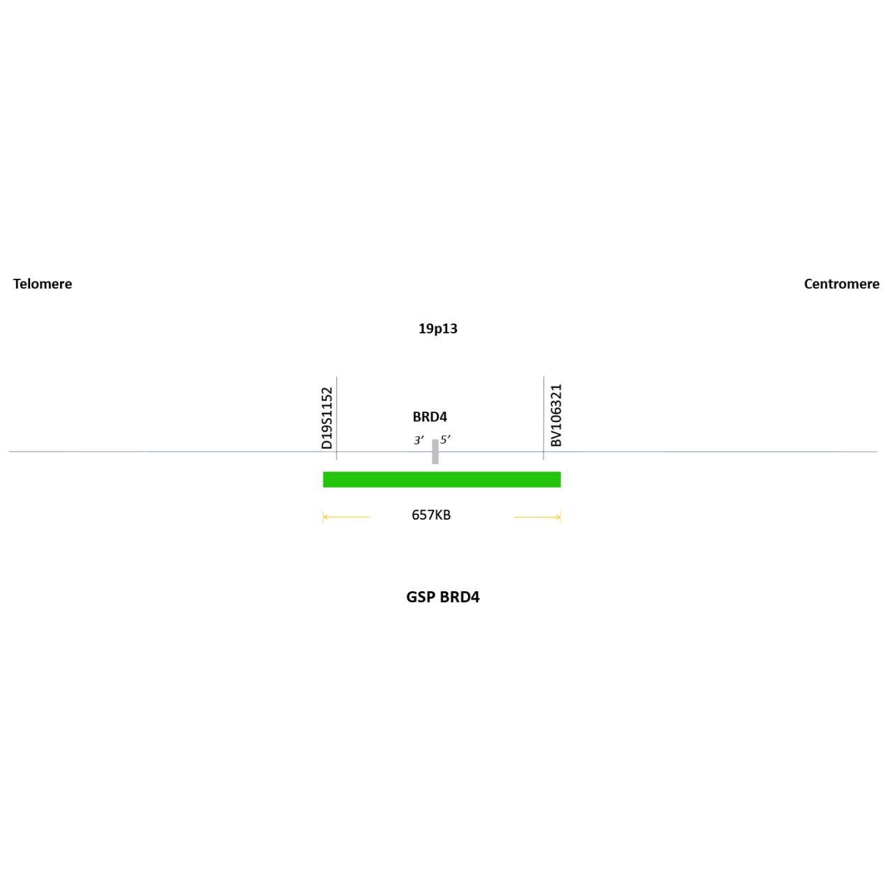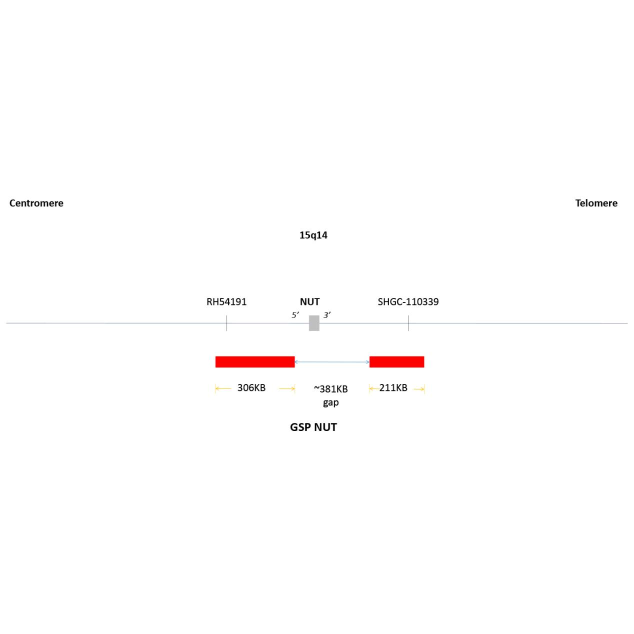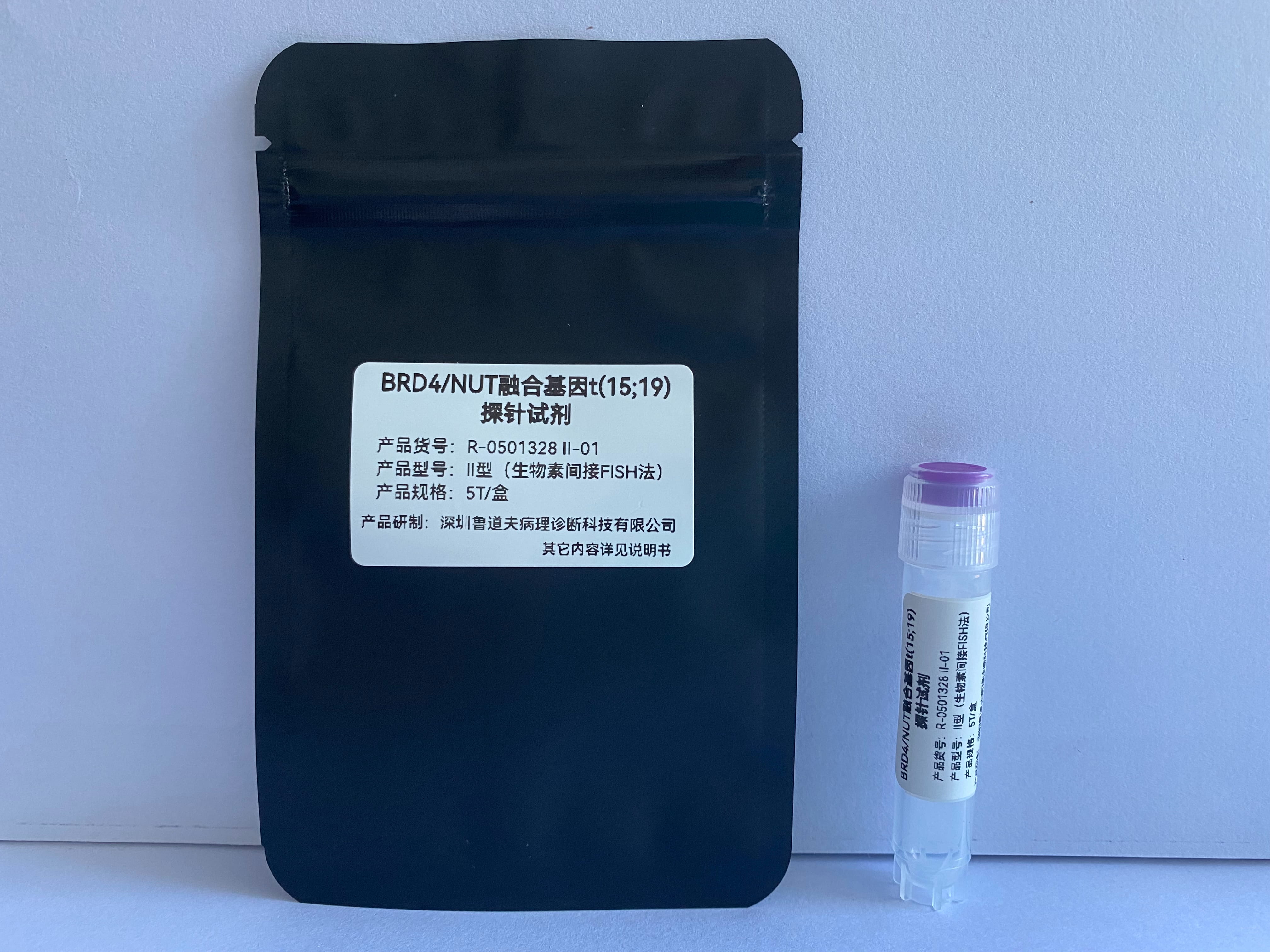 NUT中线癌是一种少见的高侵袭性的恶性肿瘤,任何年龄均可发生,好发于儿童、青年纵膈及其他中线器官的罕见肿瘤,组织起源不明,具有侵袭性。BRD4/NUT融合t(15;19)(q13;p13.1)是分化极差的中线癌的标志物,与预后差相关,此为融合基因检测探针。