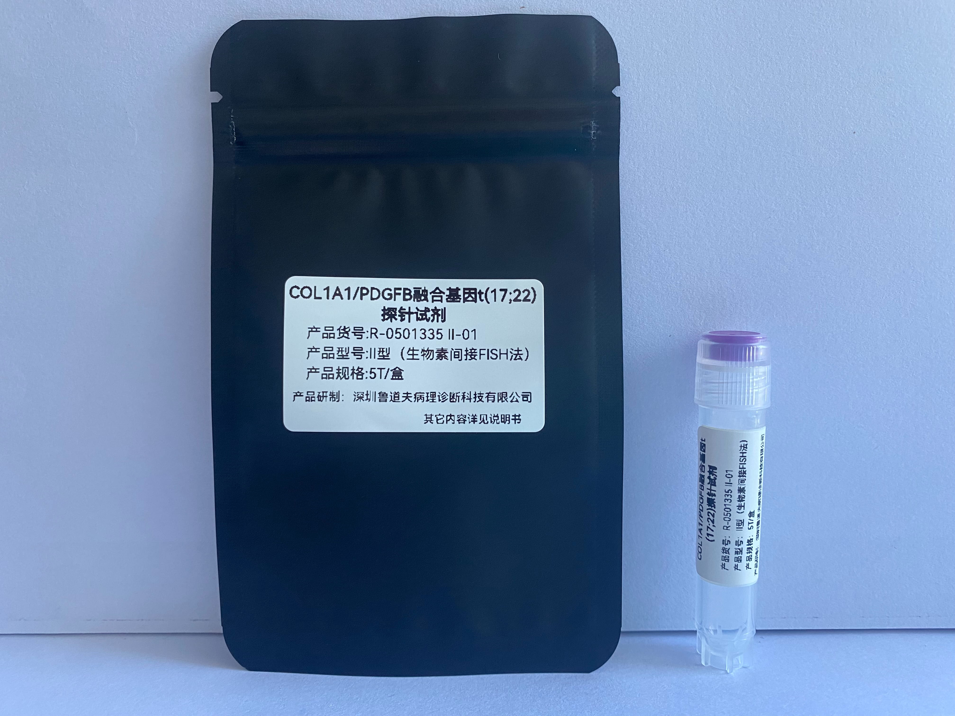 隆突性皮肤纤维肉瘤及与之密切相关的巨细胞纤维母细胞瘤的特征性分子遗传学改变:出现大量由17/22号染色体形成的环状染色体,形成COL1A1-PDGFB融合基因,这一改变在其他肉瘤中尚未发现。COL1A1-PDGFB基因融合(t(17;22)(q21;q13))多见于成年人,术后复发率高。一篇大宗文献显示,在确诊为皮隆突的185例中有178例为FISH阳性,疑似病例(probable)中为91%(104/114)FISH阳性,可能病例(possible)中为81%(91/112)FISH阳性;