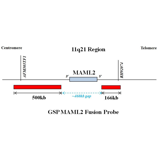 应用于粘液表皮样癌的辅助诊断。粘液表皮样癌主要与Warthin瘤伴鳞状化生、多形性腺瘤伴鳞状化生、皮脂腺或肿瘤伴鳞状化生、鳞状细胞癌、低分化腺癌等相鉴别。约50%粘液表皮样癌有特征性的t(11;19)易位,导致形成MAML2-CRTC1(MECT1)融合蛋白。而阴性易位的黏液表皮样癌被认为是腺鳞癌的一类独特亚型。需要注意,CRTC-MAML2融合也存在于肺、宫颈、甲状腺和口腔的粘液表皮样癌以及皮肤透明细胞汗腺癌中。尤其在肺粘液表皮样癌中,不伴有EGFR突变时,临床对吉非替尼敏感,提示了其可能与CRTC-MAML2有关,也为其他部分粘液表皮样癌的治疗提供了一种可能。