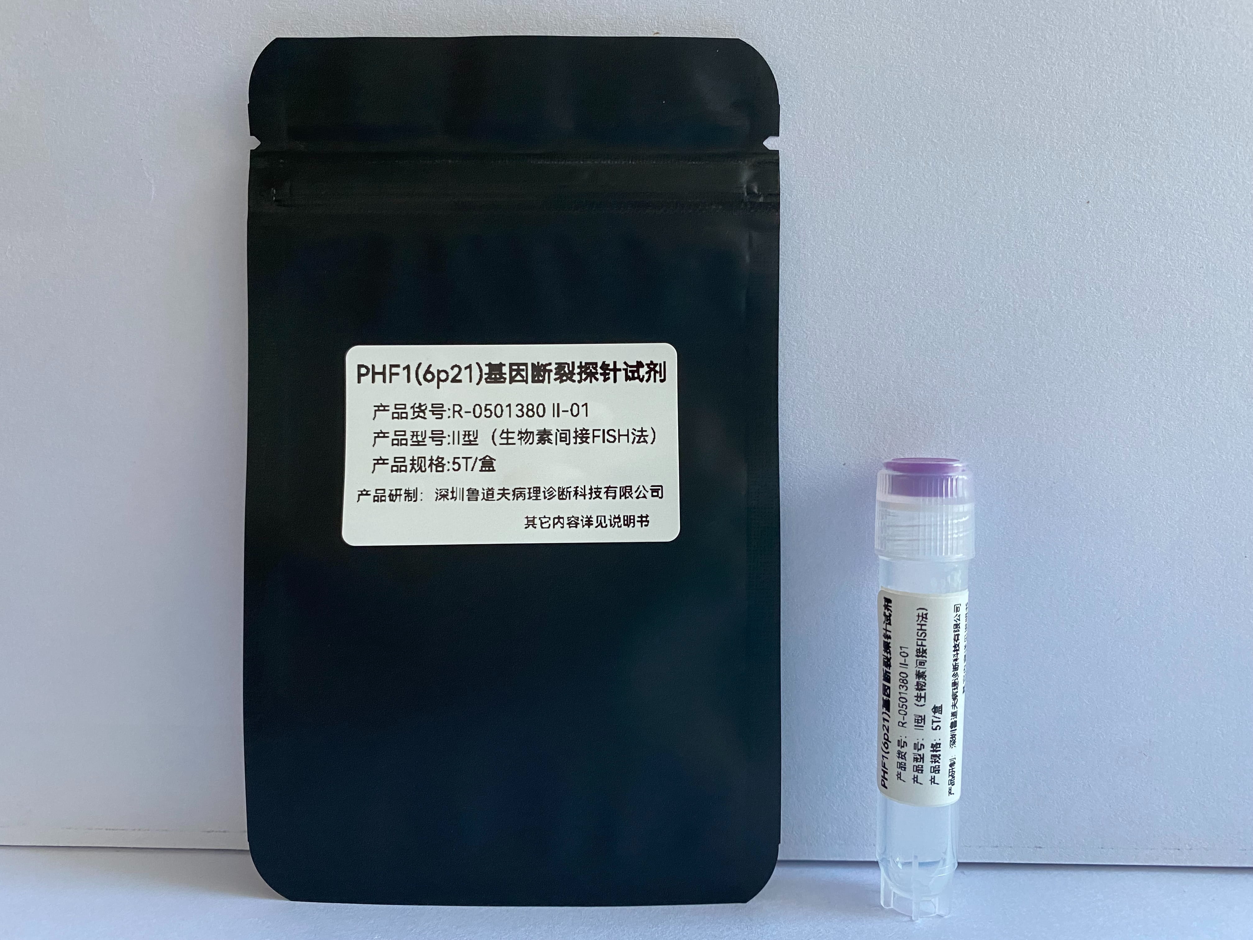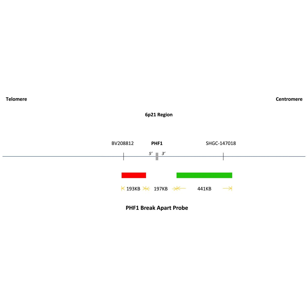 用于辅助诊断骨化性纤维黏液样肿瘤(OFMT),也可应用于子宫内膜间质肉瘤分子检测。OFMT是一类起源未明的软组织肿瘤,尽管大多数组织学及临床表现为良性,但少量表现为恶性形态学特点及有局部复发,但很少有转移。EP400-PHF1融合是OFMT的特征性分子异常。另外,在子宫内膜间质肉瘤中,PHF1可与JAZF1、EPC1及MEAF6发生融合,与低级别子宫内膜间质肉瘤分子分型相关。多说一句,目前我司已开发有YWHAE断裂、JAZF1断裂、BCOR断裂、PHF1断裂等与高级别、低级别子宫内膜间质肉瘤诊断相关的FISH探针。