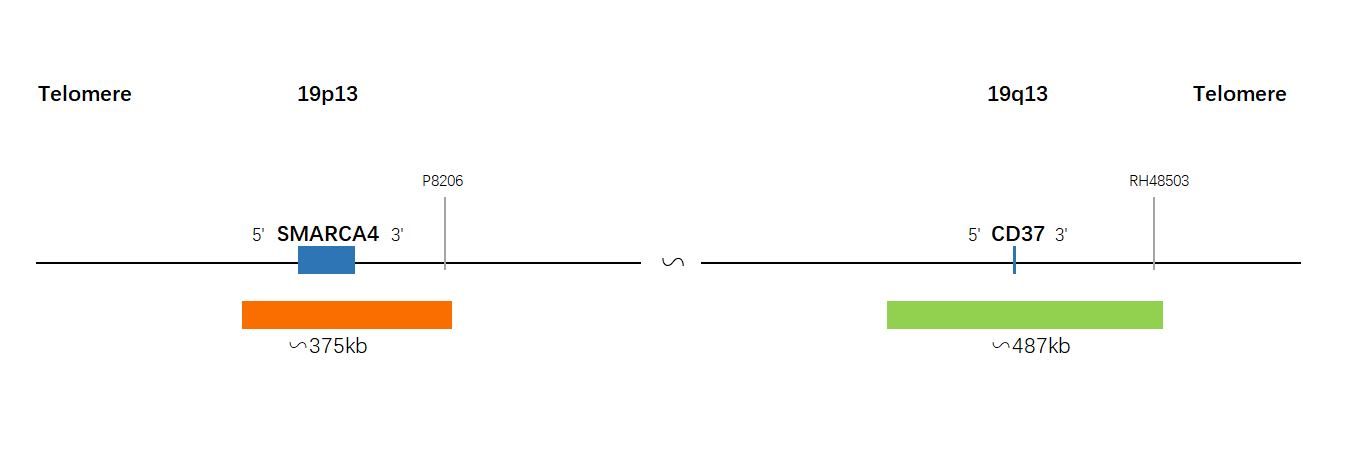 伴SMARCA4缺失的胸部肉瘤具有独特的未分化的横纹肌样形态学特征,此探针可用于检测及判断SMARCA4是否出现缺失,能够为胸部肉瘤提供辅助诊断依据。