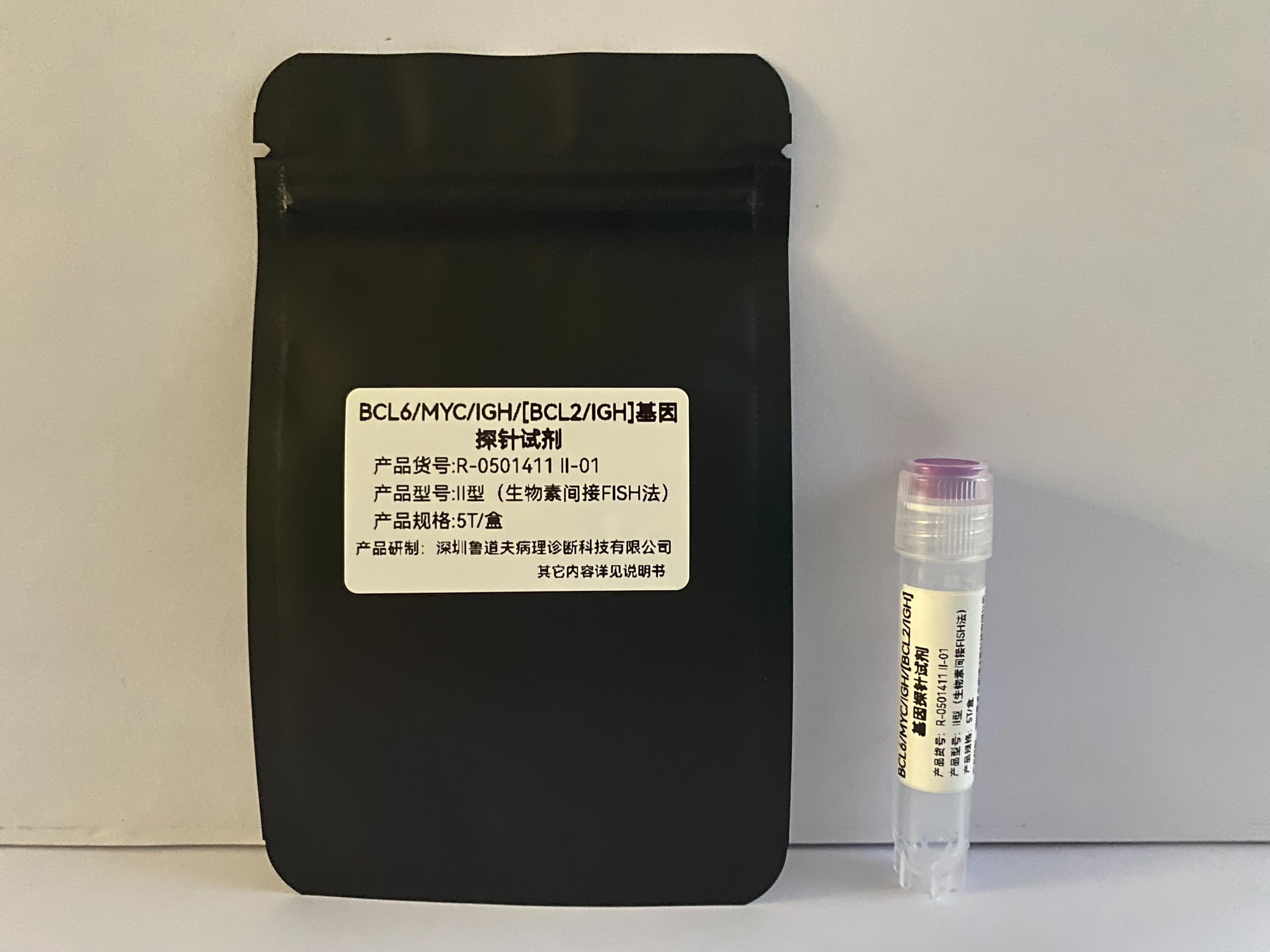 组合探针用于检测双打击/三打击淋巴瘤。双打击大B细胞淋巴瘤可见于Burkitt样(常见)、DLBCL(偶见)、TdT+ B淋巴母(偶见)、浆母细胞淋巴瘤(罕见)、低级别滤泡性淋巴瘤(罕见)。2016版WHO高级别B细胞淋巴瘤包括:Burkitt淋巴瘤、弥漫大B细胞淋巴瘤NOS、双打击淋巴瘤、三打击淋巴瘤、MYC/BCL2单独易位/单独阳性、MYC/BCL2双表达淋巴瘤、高级别未分类淋巴瘤。