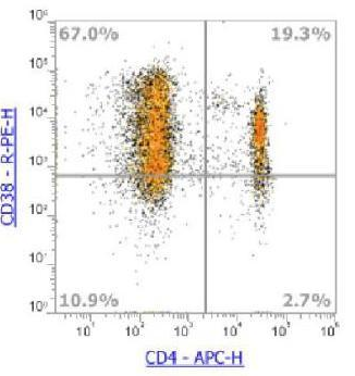 图 - 人外周血染色 Anti-Human CD4, APC 和 Anti-Human CD38, PE (Clone: HIT2) 的结果。