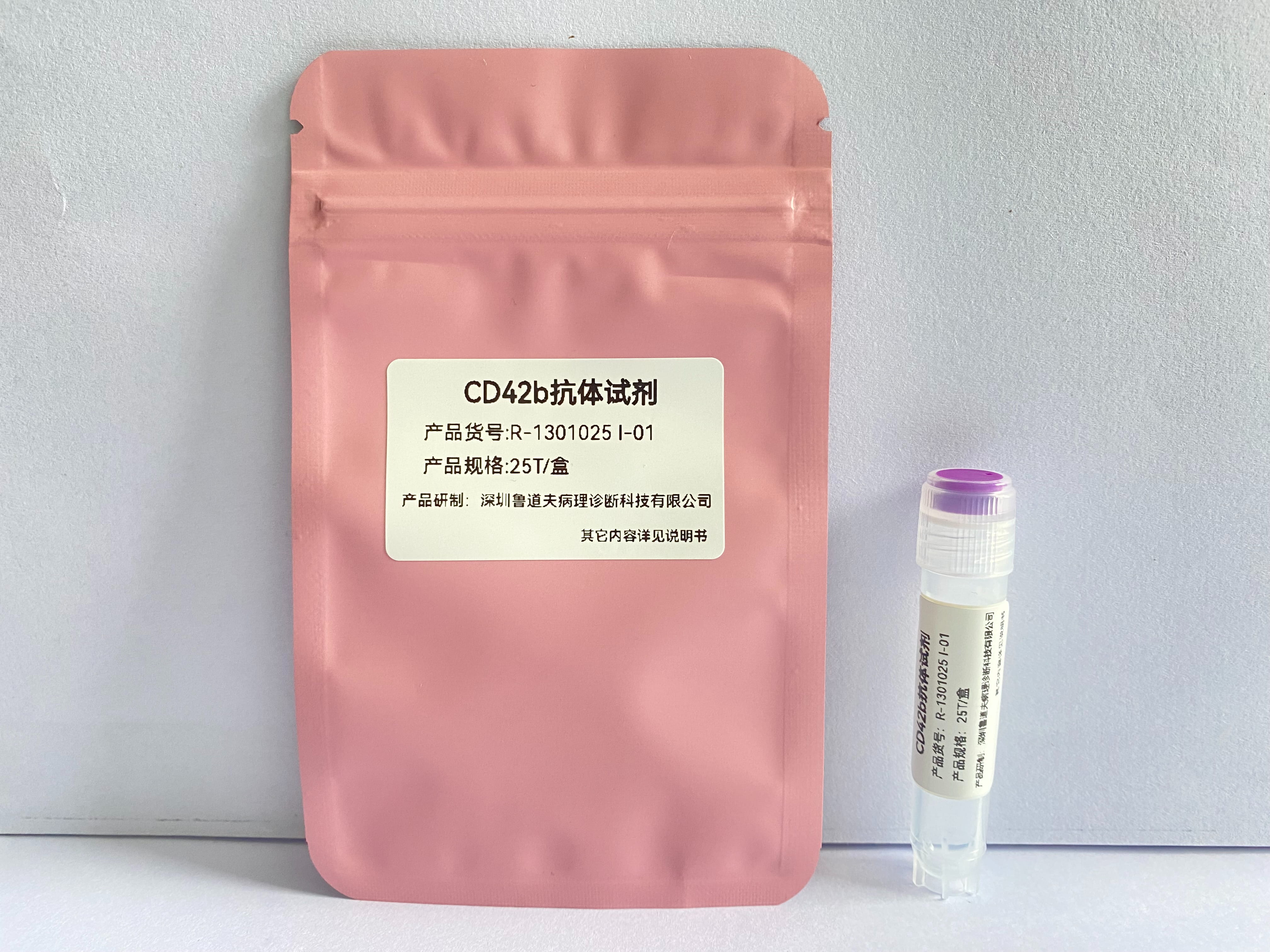 Bernard-Soulier症(遗传性GPⅠbα/Ⅸ缺乏症)患者的血小板上CD42b表达降低,原巨核细胞/巨核细胞白血病细胞(急性髓系白血病M7型)患者的血小板上CD42b阳性表达,因此CD42b可用于Bernard-Soulier症(遗传性GPⅠbα/Ⅸ缺乏症)及原巨核细胞/巨核细胞白血病M7型的诊断。