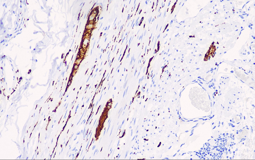 CD56 Antibody Reagent binds specifically to the CD56 molecular antigen. Immunohistochemistry kits containing CD56 Antibody Reagent are suitable for the precise diagnosis of NK cell lymphoma and small cell carcinoma.