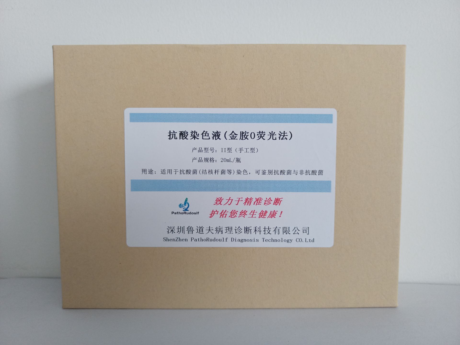 Antacid staining solution (Auramine O fluorescence method) belongs to the fluorescent staining solution, no heating is required, and it is relatively safer than the antacid heat staining solution. The staining principle is that after Auramine O staining as well as re-staining at room temperature, and after checking it with fluorescence microscope containing UV source, the antacid bacillus shows bright yellow color, and the other bacteria and substances in the background show dark yellow color, and this method can be used to check it with low magnification microscope, so that the antacid can be found out faster. This method can be used at low magnification, thus enabling more rapid identification of acid-resistant bacteria.