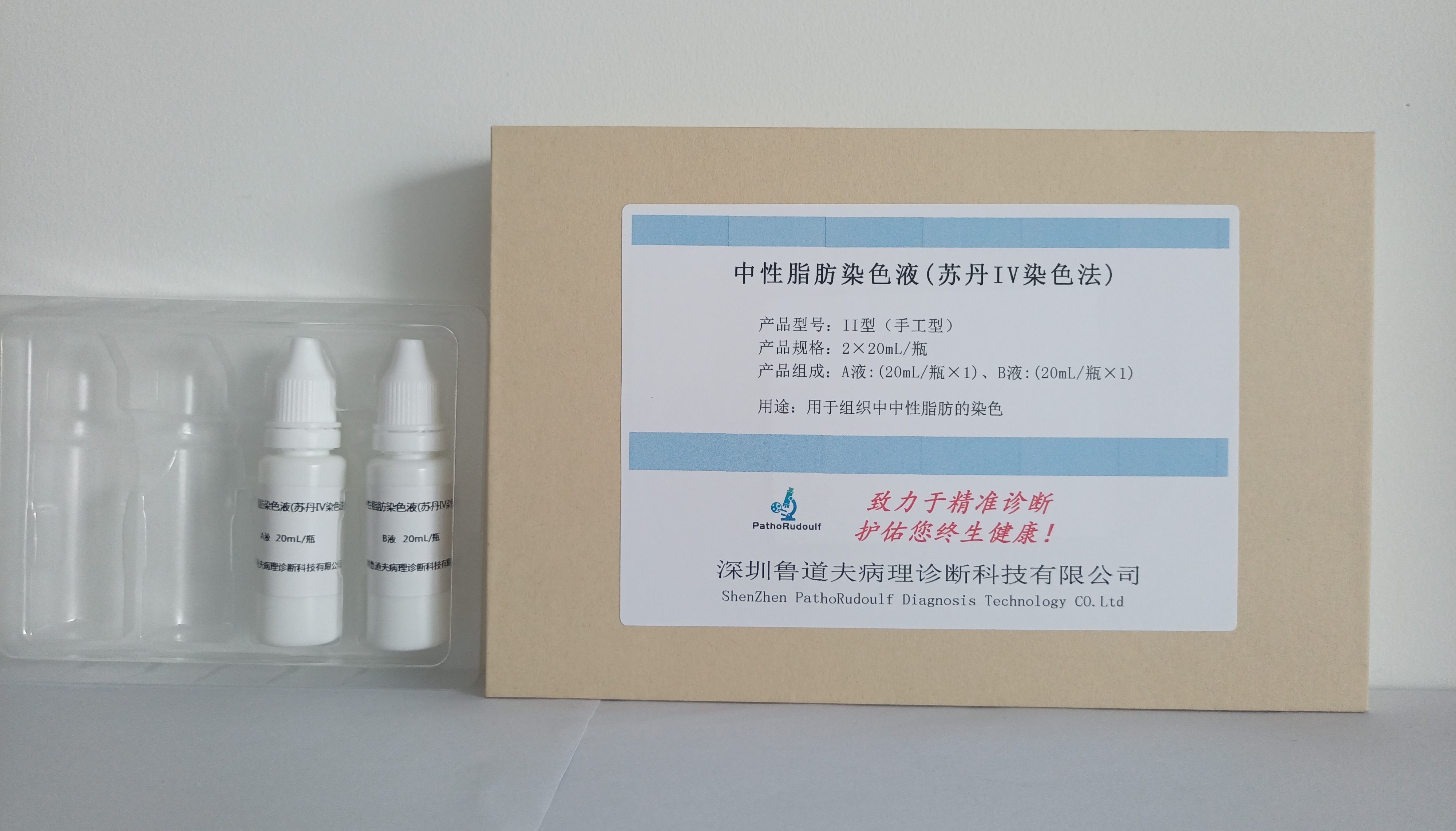Neutral fat staining solution (Sudan black B staining method) is mainly used to show the fatty degeneration of tissues and organs and the abnormal deposition of lipids, which often occurs in the liver, kidney, heart and other parenchymal organs with fatty degeneration and the appearance of most of the neutral fat droplets in the cells; identification and diagnosis of tumors occurring in the adipose tissues and their nature, the specimen is not fixed with fixative containing ethanol (if fixation is needed, 10% formalin can be used), or Paraffin section, frozen section or carbon wax section should be used; lipoma, liposarcoma, follicular meningioma, adrenocortical adenoma, etc. are positive after Sudan black staining; renal clear cell carcinoma, ovarian fibroma, etc. are negative after Sudan black staining.