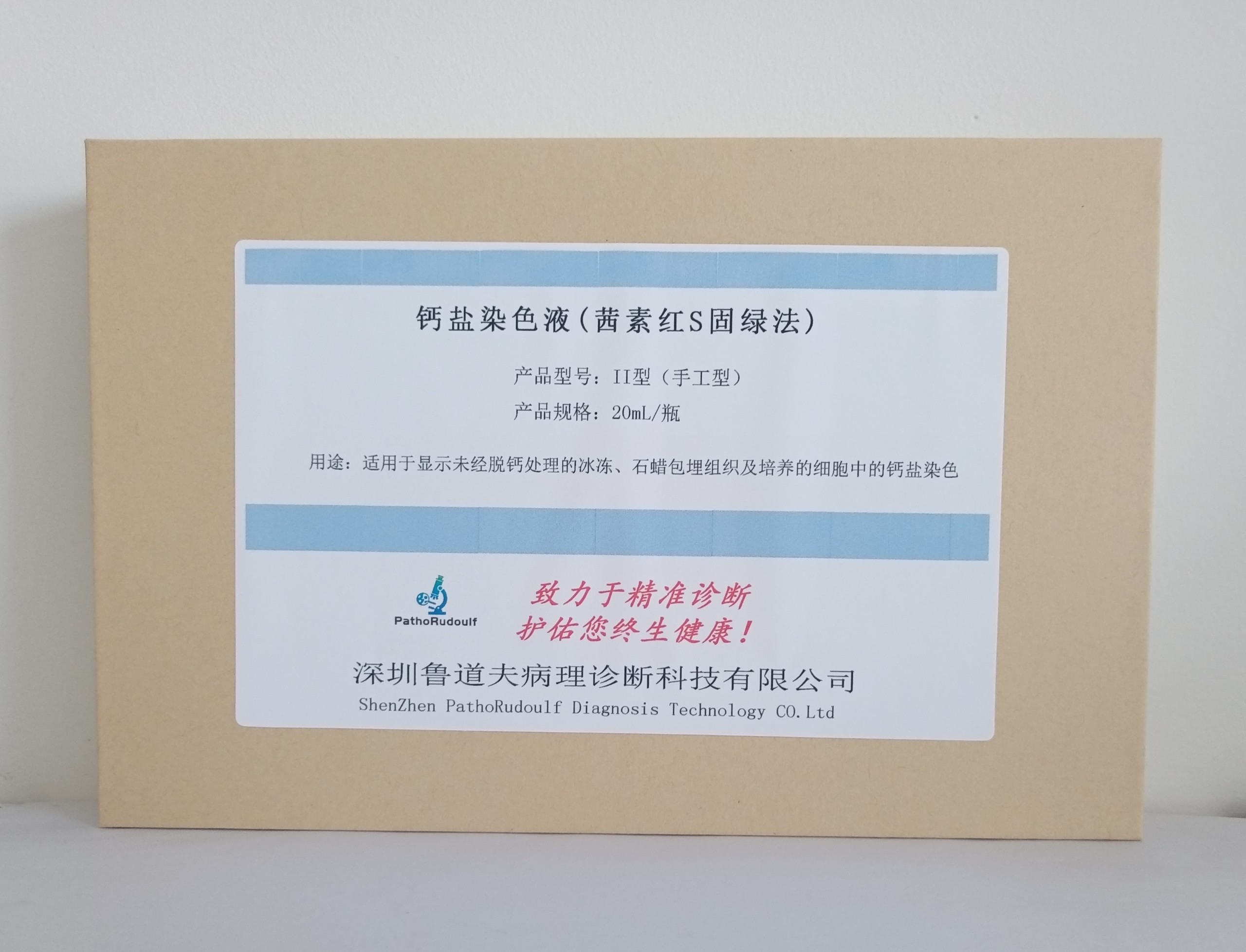 Commonly used methods for calcium salt staining include the silver nitrate method and the alizarin red S method. Calcium salt staining solutions use a combination of alizarin red S and solid green for staining. Alizarin red S is an anthraquinone derivative, a sodium salt of alizarin sulfonate, which chelates with calcium salts in calcium carbonate or calcium phosphate to form an orange-red complex; the calcium salts combine with the alizarin red to form a red-orange precipitate, which is suitable for staining small quantities of calcium-salt tissues.