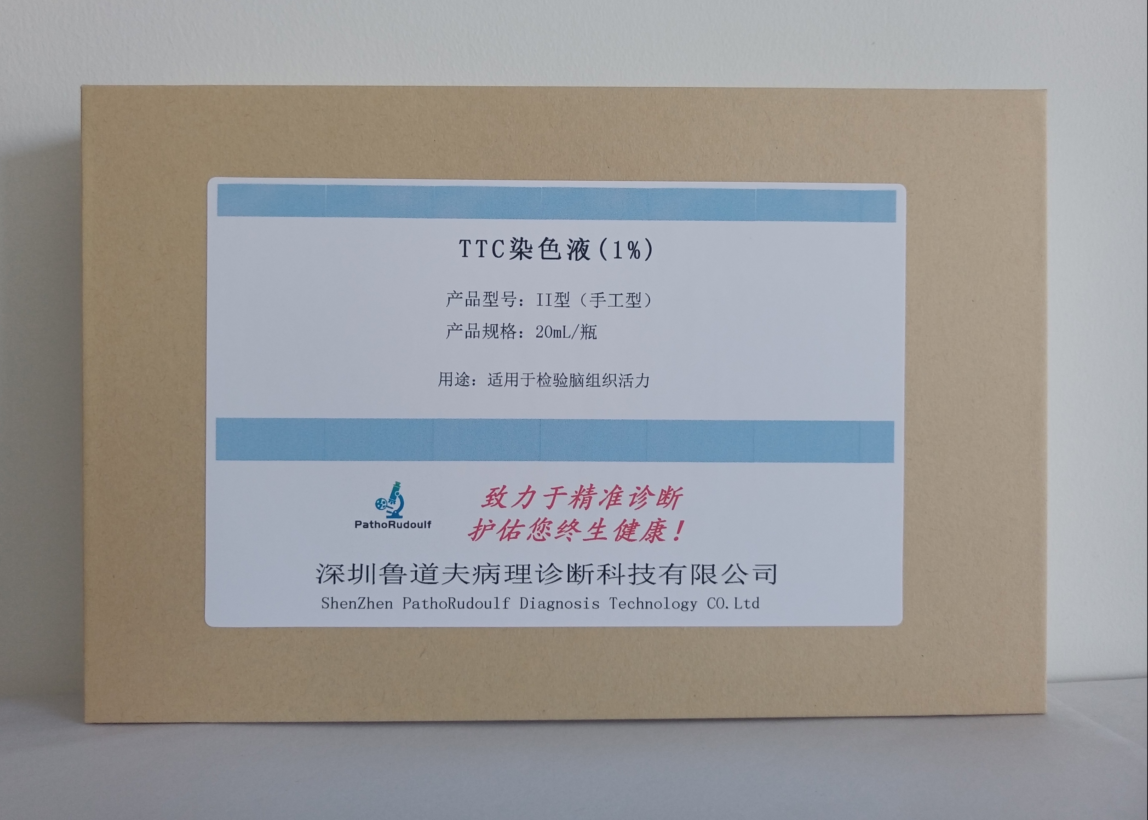 TTC staining solution (1%) for myocardial infarction and brain tissue necrotic zone observation earlier than electron microscopy 3-6h, earlier than light microscopy 24h, mostly used in autopsy of fresh cardiac tissue and brain tissue as well as the staining of early infarcted tissue in experimental animal models. Its characteristics: ① TTC staining directly from the fresh tissue can be stained, without fixation, embedding and other steps; ② TTC staining time is short, generally 20 ~ 30min; ③ TTC staining solution can be reused, 10ml can be stained 20 slices.