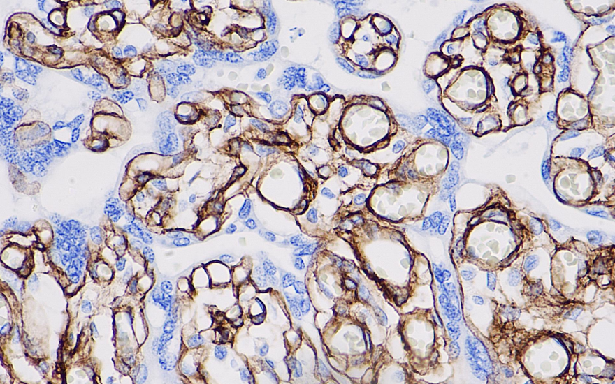 Type IV collagen is a major component of the basement membrane. This antibody specifically recognizes type IV collagen in others and stains the basement membranes of a variety of tissues and organs, including the basement membranes of the skin, kidney, muscle, spleen, lymph nodes, placenta, and lungs. However, the basement membranes of the corneal epithelium are negative, and this antibody is mainly used to study the alterations of the basement membranes in various tumors.