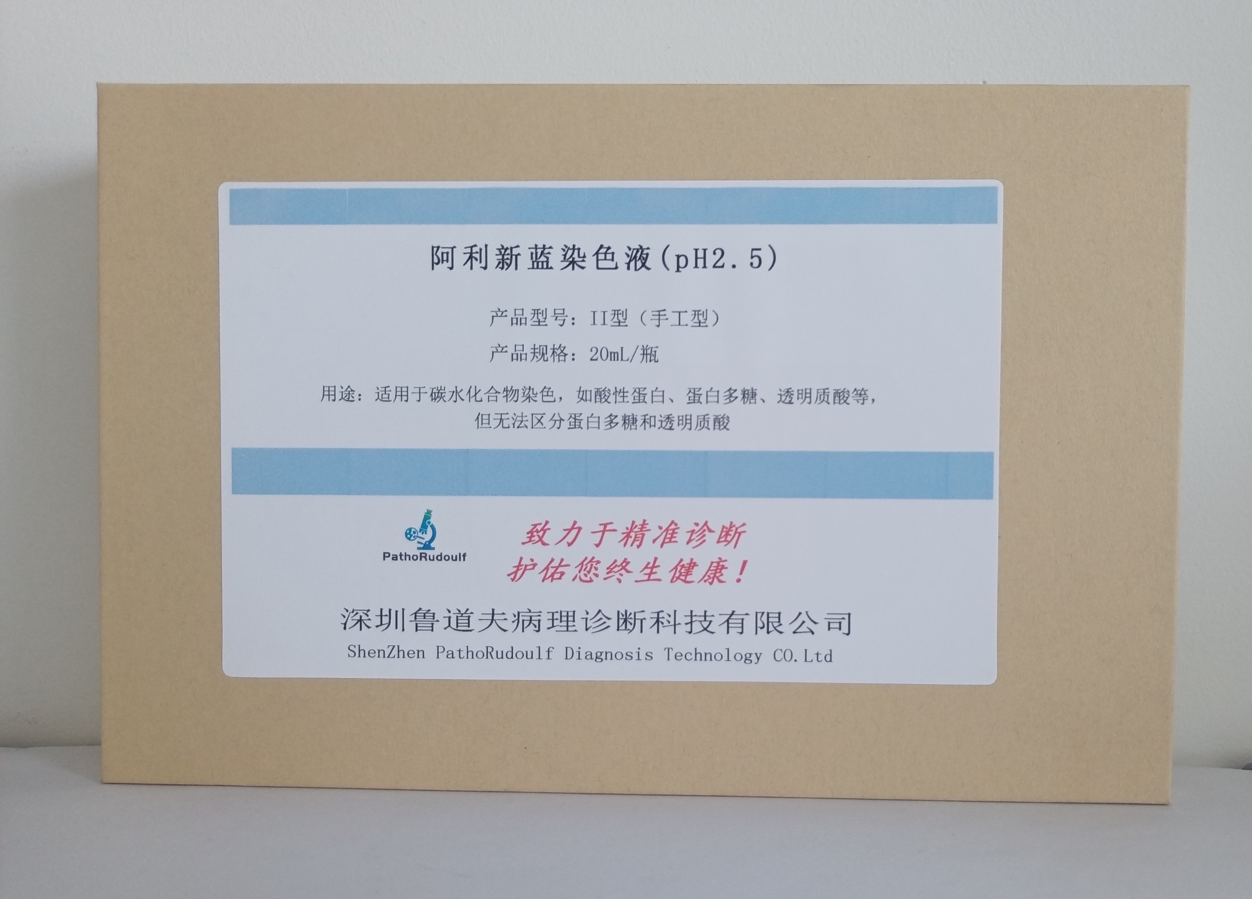 Alisin blue staining solution is suitable for staining carbohydrates, such as acid mucin, proteoglycan, hyaluronic acid, etc., but it can't distinguish between proteoglycan and hyaluronic acid. pH2.5 is more suitable for staining saliva-acidic mucus substances (or hydroxyl-containing mucus substances), the new cryptococcal staining, and pH1.0 is more suitable for staining sulfur-containing mucus substances.