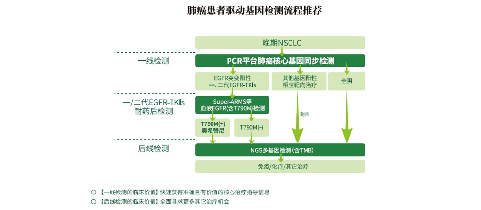 Features: guideline recommended core driver genes for first-line mandatory testing of lung cancer; easy operation, same-day result report to meet the demand for timely clinical diagnosis and treatment; accurate results, technical validity has been clinically verified and recommended by the guideline; save the amount of specimen, only 5-10 sections are needed, suitable for cytology of small specimens.