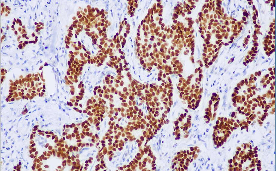 GATA3 is a zinc finger transcription factor that participates in the activation, guidance, and regulation of cell proliferation, growth, and differentiation in many tissues. However, in tumor tissues, GATA3 is exclusively expressed primarily in breast cancer and urothelial carcinoma. It has been reported that GATA3 expression in breast cancer is associated with ER, PR, and Her2; in urothelial carcinoma, its expression is positively correlated with tumor invasiveness and grade.