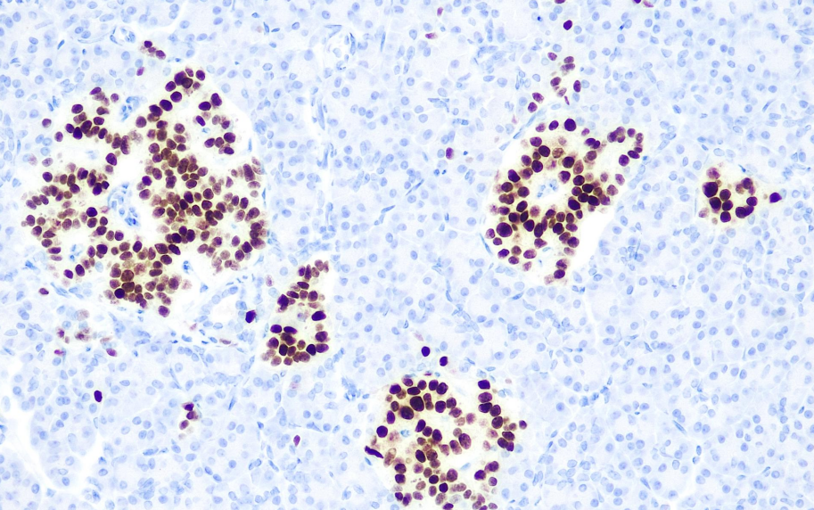 The INSM-1 gene is located on chromosome 20p11 and is also known as KLF16. It was first reported in 1992 and is a zinc finger protein with DNA-binding transcriptional regulatory functions. It plays a significant role in neurogenesis and neuroendocrine differentiation and can serve as a broad-spectrum neuroendocrine marker. The sensitivity is comparable to Synaptophysin and CD56, and superior to Chromogranin A.