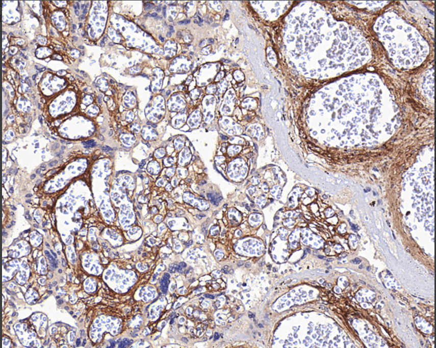 Type I collagen is mainly distributed in skin, bone, cornea, tendon and other tissues, and is an important component of the extracellular matrix. This antibody is mainly used in the study of the distribution of connective tissue proteins, epithelial/mesothelial interactions and basement membranes.