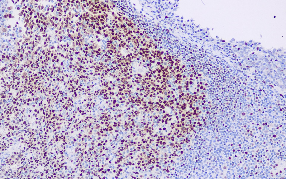 LMO2 is expressed in normal germinal center B cells and in some tumors except those derived from bone marrow white blood cell precursors and endothelial cells. It is weakly expressed in mantle B cells but not in mantle cells and marginal zone lymphomas. The positive site is located in the nucleus. It is mainly used in the research of lymphohematopoietic system tumors.