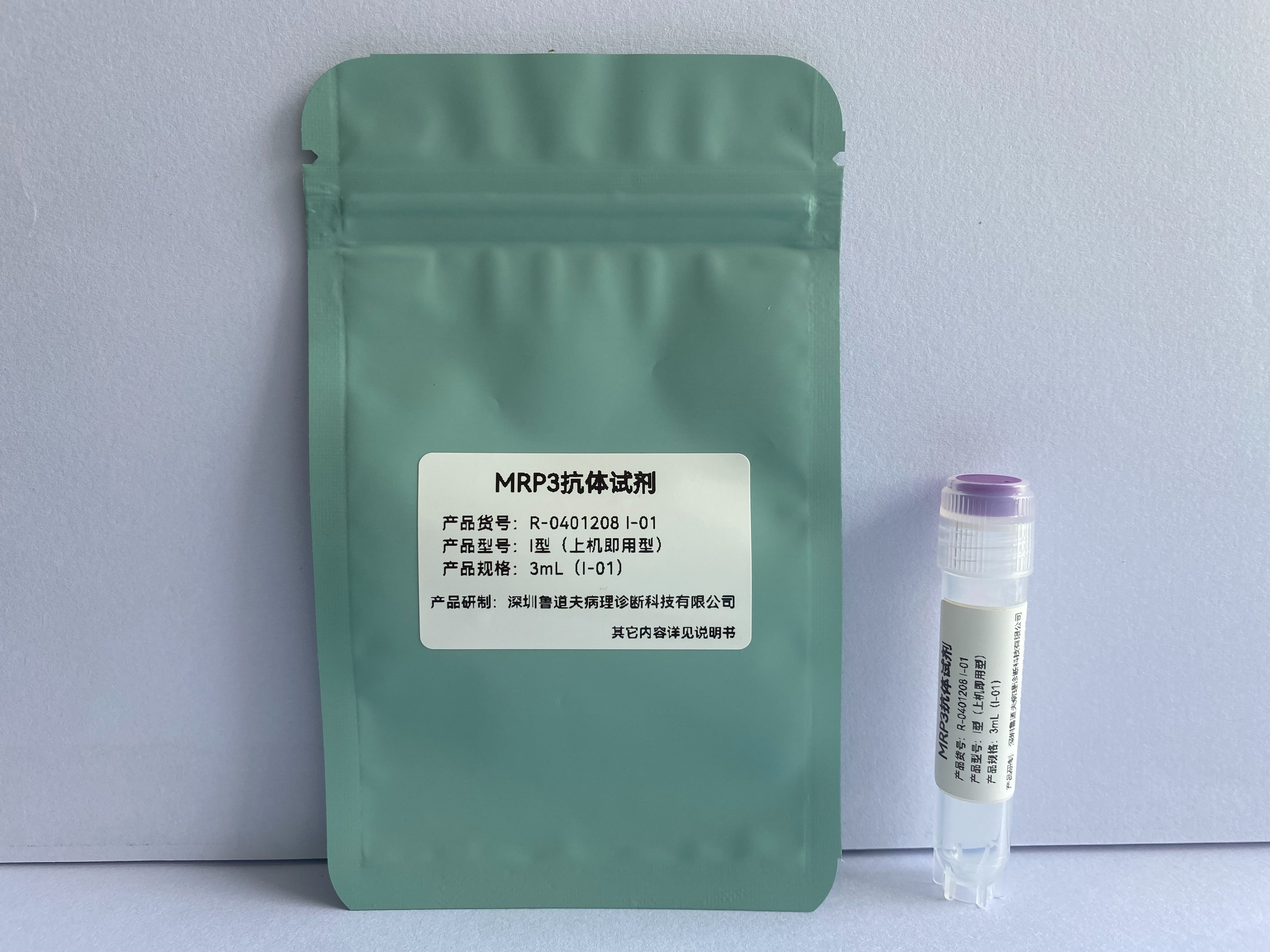 The MRP3 antibody reagent can specifically bind to the MRP3 molecular antigen. The immunohistochemical kit containing the MRP3 antibody reagent is suitable for the assessment of multidrug resistance in tumors.