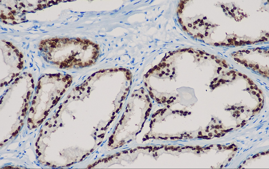 NKX3.1 is a prostate-specific androgen regulatory homeobox gene located on chromosome 8p. High-grade prostate cancer and high-grade urothelial carcinoma samples stained with HE are difficult to distinguish. Currently, prostate cancer markers such as PSA and PSAP can effectively determine whether prostate cancer originates from the prostate or other locations, but they have relatively low sensitivity in differentiating poorly differentiated or well-differentiated cases. NKX3.1 is a sensitive and specific tissue marker that can distinguish prostate cancer from urothelial carcinoma. At present, thrombomodulin and uroplakin are used to identify tumors of urothelial origin, but their sensitivity is not good. NKX3.1 is a sensitive and specific tissue marker for prostate cancer, which can be used to distinguish prostate cancer, urothelial carcinoma and unknown primary lesions.