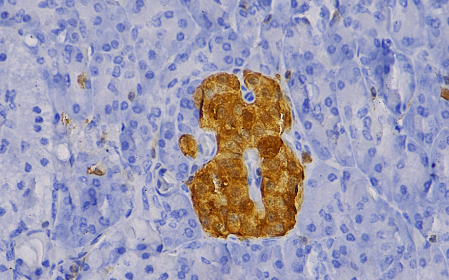 NSE is mainly expressed in neuronal cells, certain neuroendocrine cells and their tumors, and shows diffuse cytoplasmic staining. This antibody can specifically recognize 45kD NSE, and can be used to assist in the diagnosis of neuroendocrine tumors. Since smooth muscle, myoepithelial cells, renal tubular cells, lymphocytes, etc. can also express NSE, attention should be paid to it in the diagnosis.