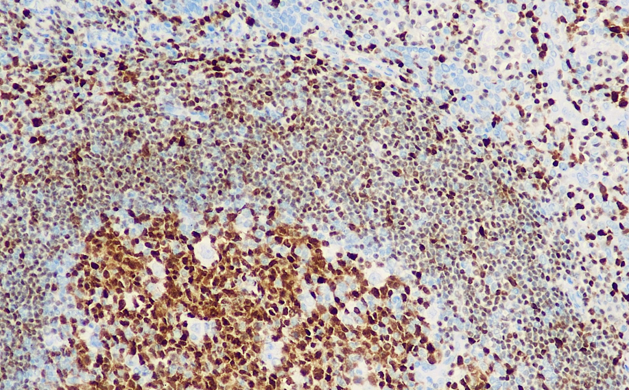 Oct-2 is a transcriptional activator required for the expression of B-cell immunoglobulin genes. It is usually expressed in the nucleus of B cells, including plasma cells (the expression of Bob.1 is stronger than that of Oct-2). This antibody is generally used in combination with Bob.1 and is mainly applied in the research of Hodgkin's lymphoma and large B-cell lymphoma. Some T-cell lymphomas can also be Oct-2 positive.