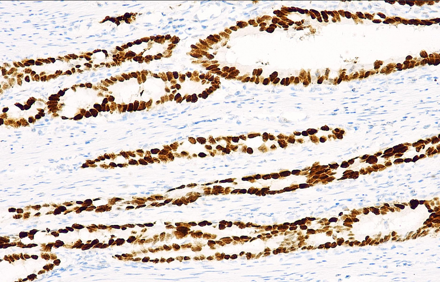 p53 is a tumor suppressor gene with tumor suppression and transcriptional activity. DNA damage or cellular stress signals can induce p53 gene transcription, triggering cell cycle arrest, apoptosis and DNA repair. Mutations at the nucleophosphoprotein site of the p53 gene are a common form of mutation in human cancers. p53 mutations or inactivation occur in approximately 60% of cancers. The main type of p53 detected by immunohistochemistry is mutant p53, which can be used as a prognostic reference for the research of malignant tumors.