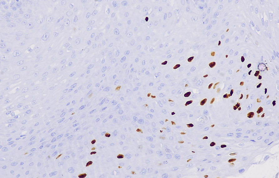 This antibody is a broad-spectrum HPV virus marker that can recognize HPV subtype antigens of 6, 11, 16, 18, 31, 33, 42, 51, 56 and 58 in human tissues. It is mainly used for the research of skin or mucosal lesions caused by HPV virus infection (such as condyloma acuminatum).