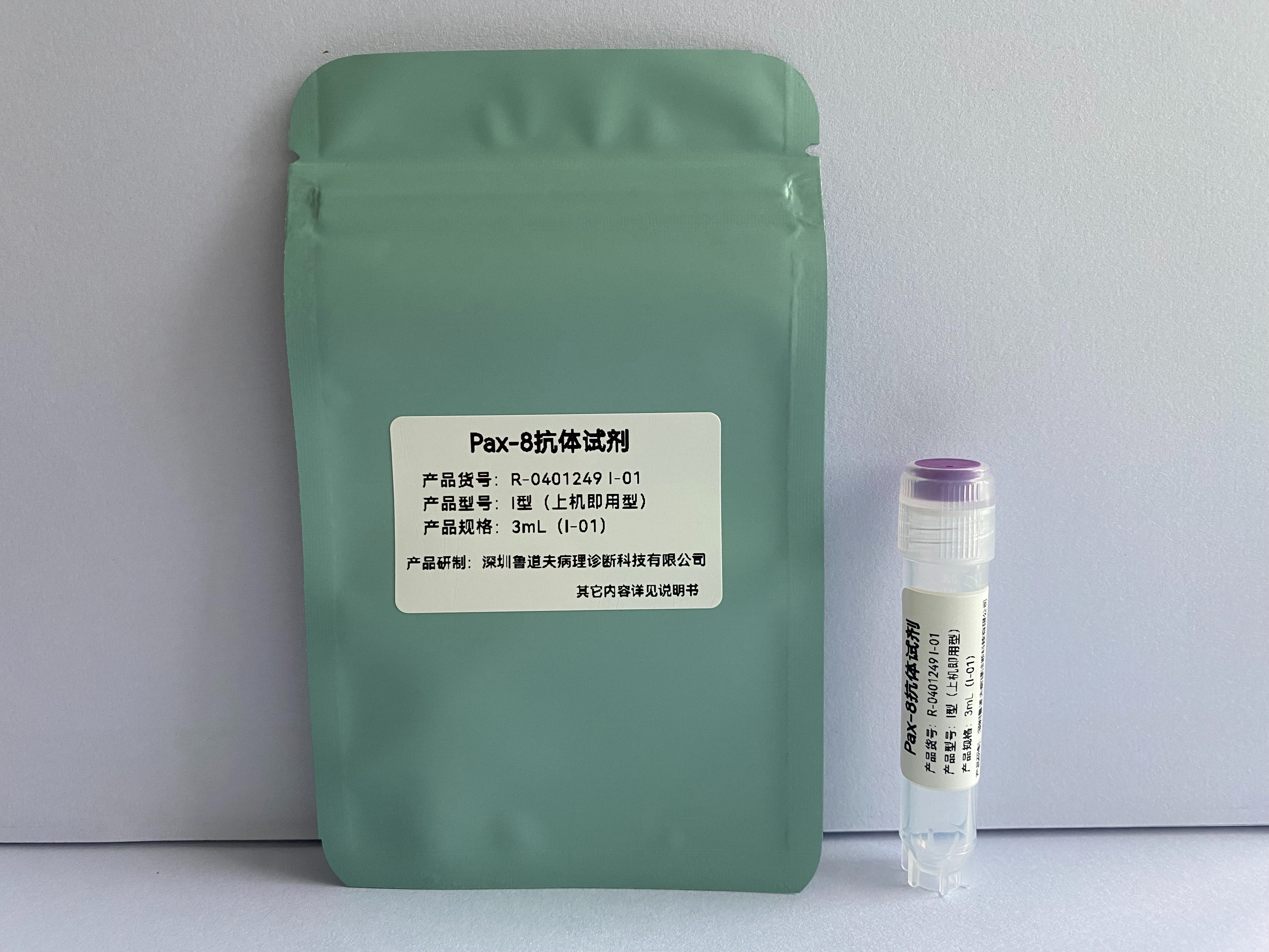 The Pax-8 antibody reagent can specifically bind to the Pax-8 molecular antigen. The immunohistochemical kit containing the Pax-8 antibody reagent is suitable for the precise diagnosis of thyroid cancer, renal cell carcinoma and tumors derived from Mullerian ducts (such as ovarian serous carcinoma).