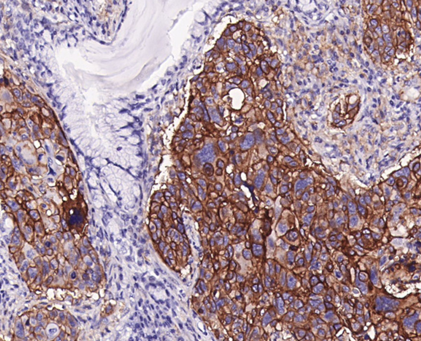 Programmed cell death ligand 1 (PD-L1), also known as CD274 or B7-H1, is a type I transmembrane protein involved in cellular regulation and immune responses.PD-L1 protein is widely expressed in antigen-presenting cells, activated T/B cells, macrophages, placental trophoblast cells, myocardial endothelial and thymic cortical epithelial cells.PD-L1 has been implicated in the immune escape mechanism of tumors, and PD-L1 protein expression was successively detected in human PD-L1 protein expression has been detected in breast, lung, gastric, intestinal, pancreatic and melanoma tumors. Studies have shown that PD-L1 expressed by tumor cells and antigen-presenting cells in the tumor microenvironment can inhibit the activation of tumor antigen-specific T cells via the PD-1/PD-L1 signaling pathway, and down-regulate the T cell-mediated immune response to tumors.