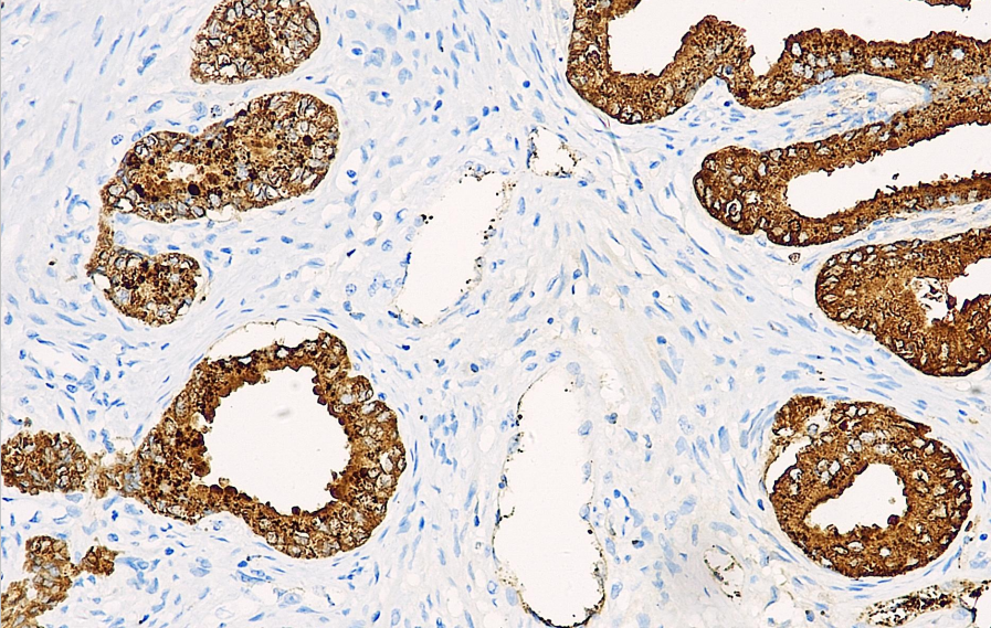 PSAP (Prostatic Specific Acid Phosphatase) is an isoenzyme of acid phosphatase secreted by prostate epithelial cells and is expressed in normal prostate tissue, hyperplastic prostate tissue, and prostate cancer. This antibody is primarily used for research on prostate cancer and metastatic prostate cancer, but it cannot be used for research on benign or malignant prostate diseases.