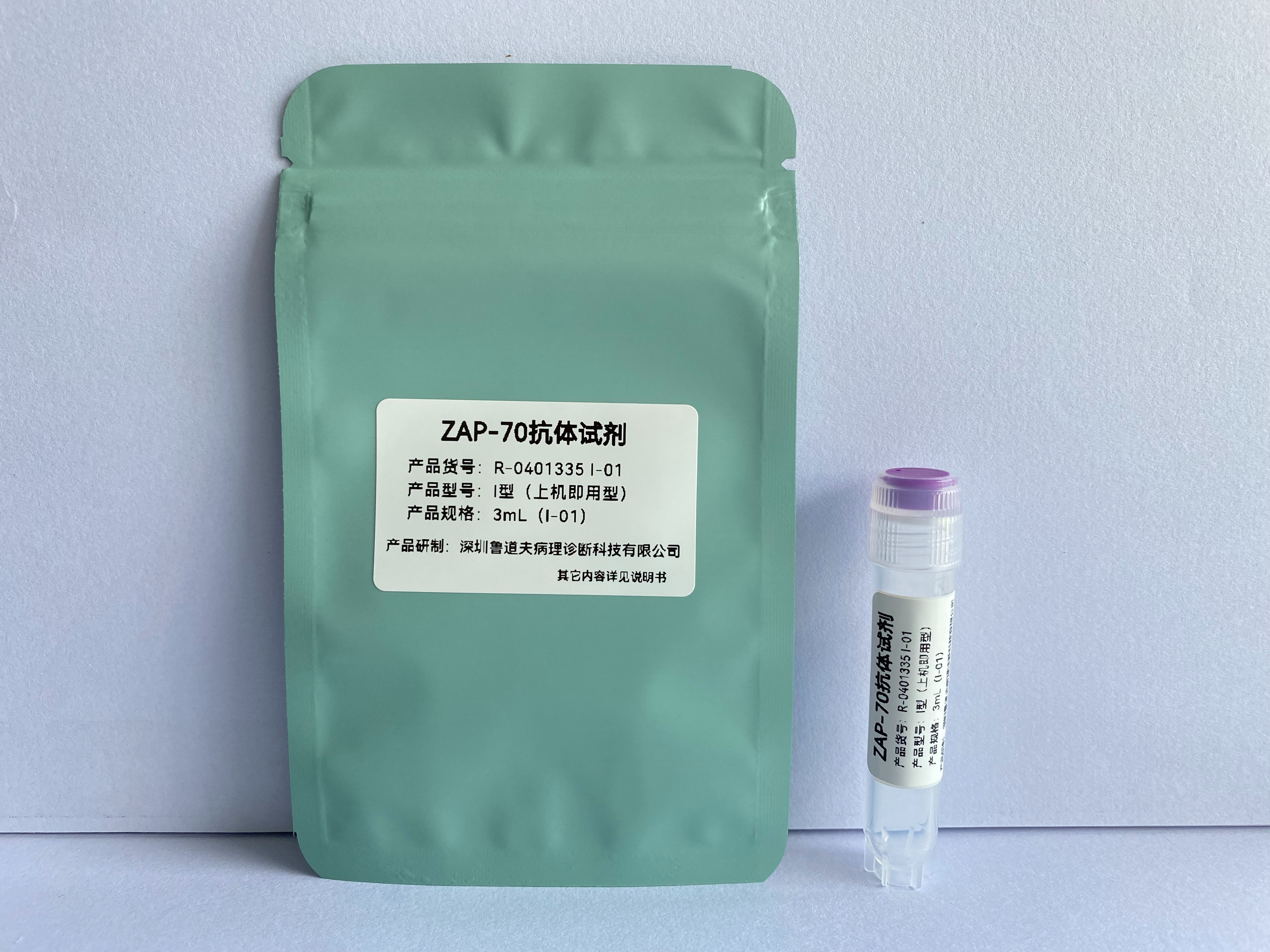 The ZAP-70 antibody reagent specifically binds to the ZAP-70 molecular antigen. The immunohistochemistry kit containing the ZAP-70 antibody reagent is suitable for prognostic stratification of chronic lymphocytic leukemia (CLL).