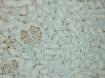 Complement C4d antibody reagents can specifically bind to complement C4d molecular antigens. Immunohistochemistry kits containing complement C4d antibody reagents are suitable for the auxiliary diagnosis and prognosis prediction of lung cancer.