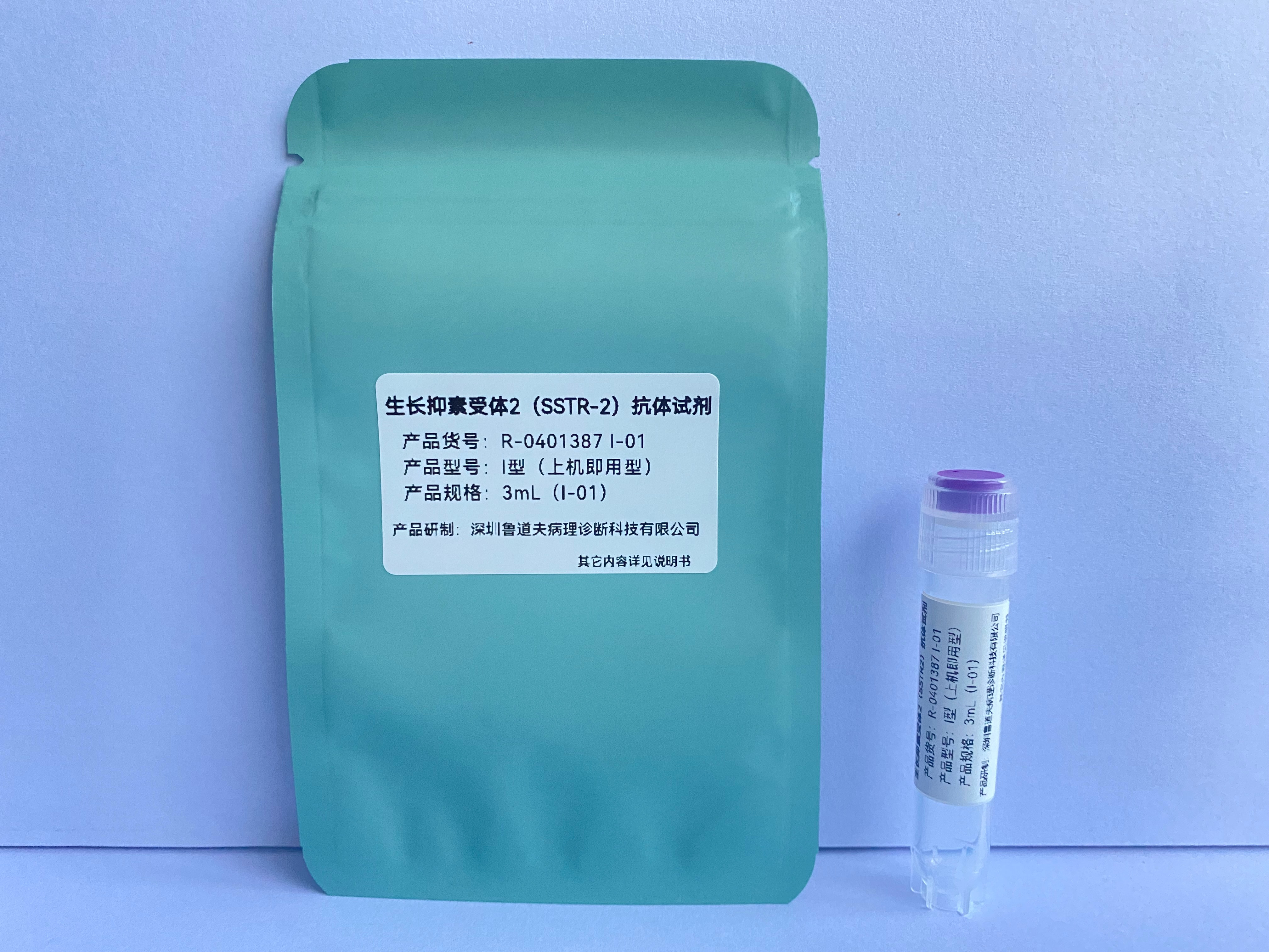 The SSTR2 antibody reagent specifically binds to the SSTR2 molecular antigen. The immunohistochemistry kit containing the SSTR2 antibody reagent is suitable for the auxiliary diagnosis of meningioma, neuroblastoma, pituitary adenoma, small cell lung cancer, and carcinoid tumors.