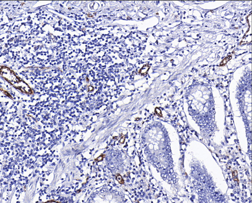Human vascular hemophilic factor (VWF) is a 309 KDa multimeric plasma glycoprotein that plays an important role in maintaining hemostasis by forming a molecular bridge between the subendothelial collagen matrix and the platelet-surface receptor complex GPIb-IX-V, which promotes platelet adhesion to the site of vascular injury VWF can also act as a molecular chaperone for coagulation factor VIII by delivering it to the site of injury to stabilize its heterodimeric structure and protect it from premature plasma clearance. VWF also acts as a molecular chaperone for coagulation factor VIII, delivering it to the site of injury, stabilizing its heterodimeric structure and protecting it from premature plasma clearance. VWF is synthesized by endothelial cells and has been reported to be expressed in many tumors of vascular origin. IHC results contribute to the classification of acute myeloid leukemia FAB type M7, angiosarcoma and epithelioid hemangioendothelioma.