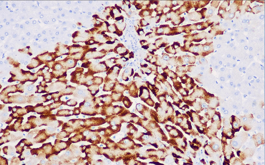 This antibody reacts with the ad/ay subtype of hepatitis B virus surface antigen and shows diffuse coloration in the cytoplasm of infected tissues. It is mainly used in liver tissues infected by the hepatitis B virus, and is also used in studies of the correlation between hepatitis B virus infection and cirrhosis and hepatocellular carcinoma.