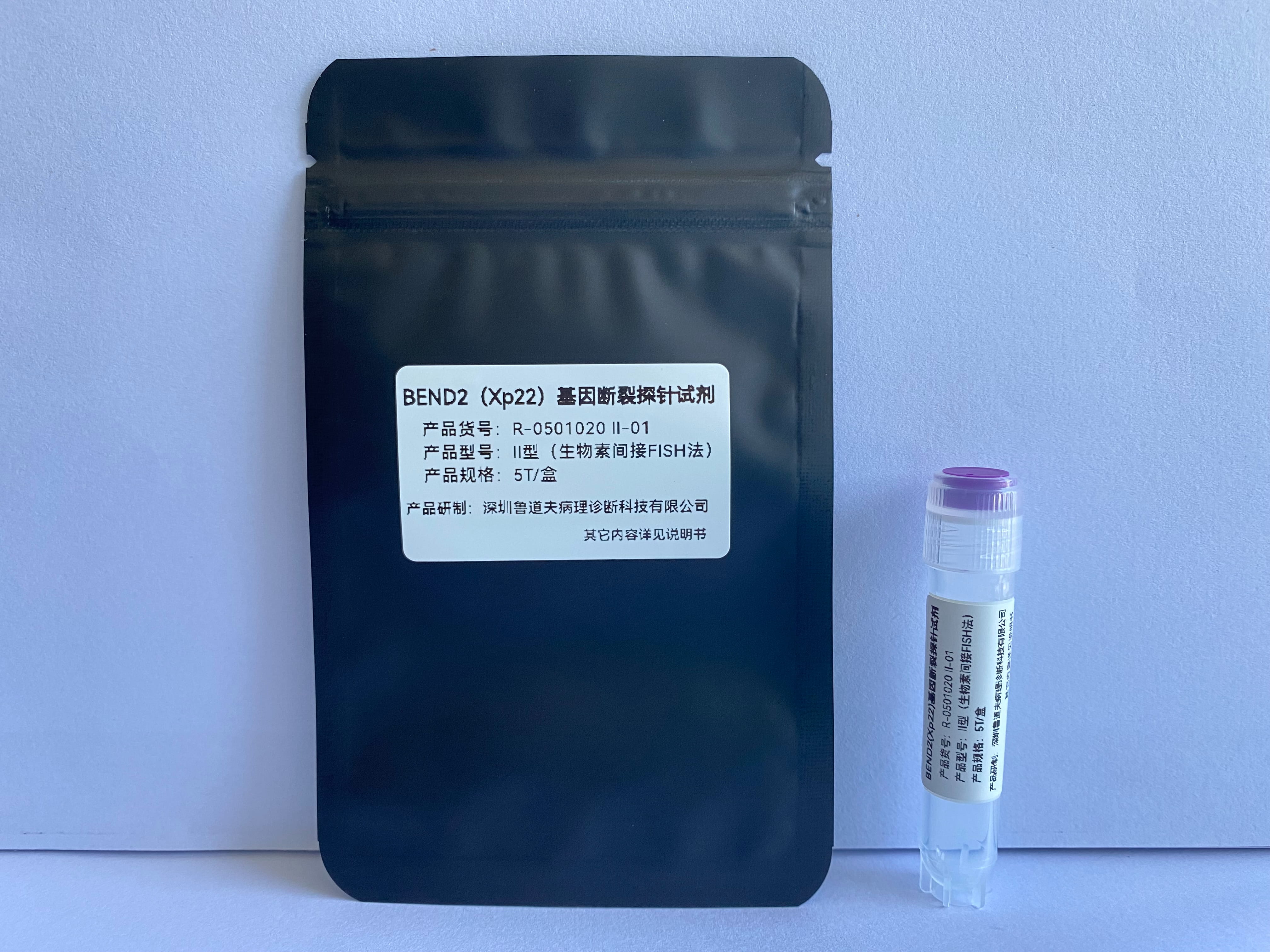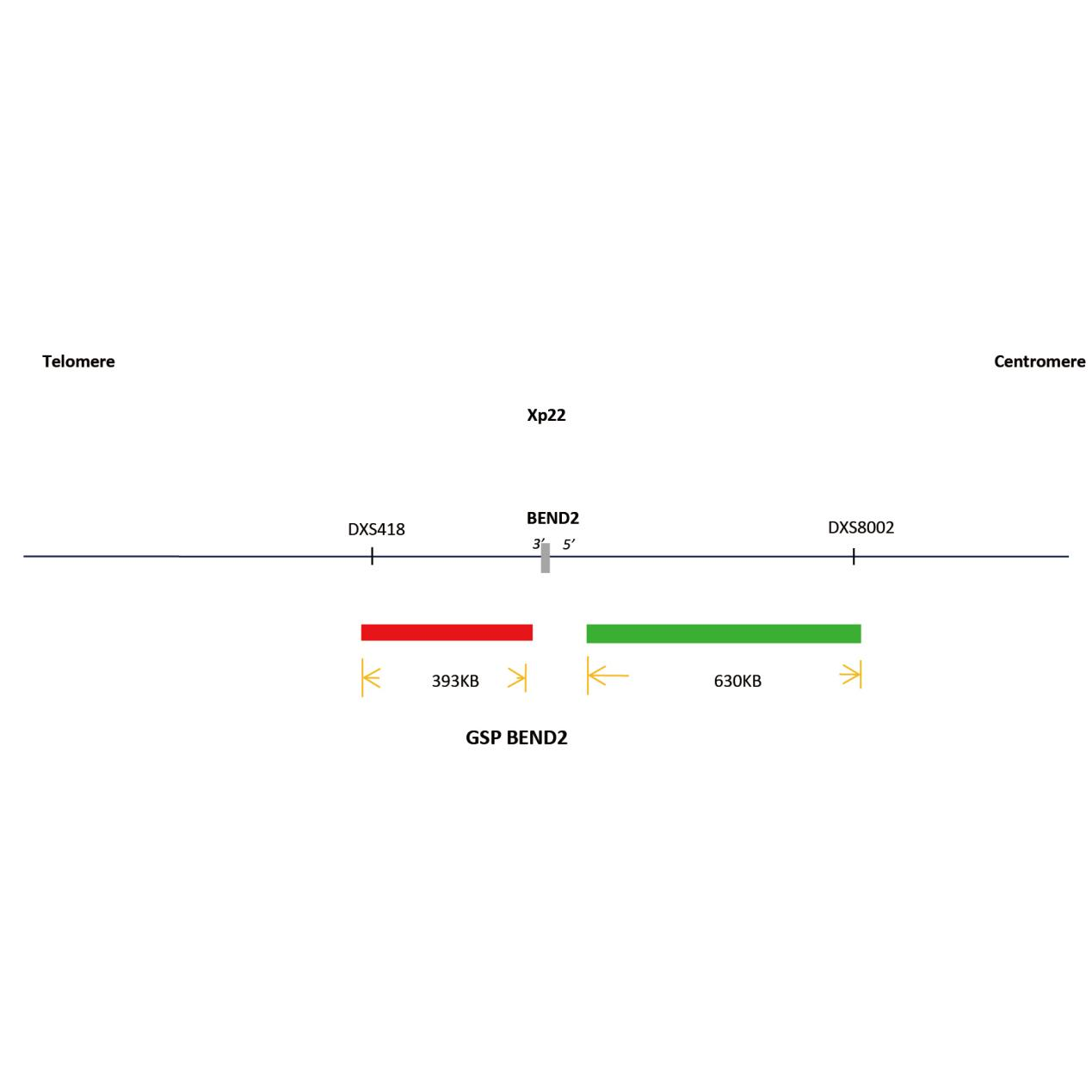 Used to detect whether BEND2 (Xp22) has undergone a break. In 2019, a literature report indicated that whole-genome sequencing analysis revealed CHD7-BEND2 fusions in a group of well-differentiated grade 3 pancreatic neuroendocrine tumors (PanNETs). Additionally, in 2017, the ICGC study identified two cases of grade 3 PanNETs with EWSR1-BEND2 fusions. Additionally, MN1-BEND2 fusions have been identified in central nervous system PNETs.
