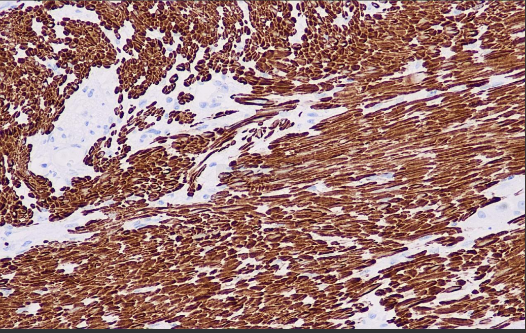 Caldesmon Antibody Reagent binds specifically to Caldesmon molecular antigen. Immunohistochemistry kits containing Caldesmon Antibody Reagent are indicated for the precise diagnosis of tumors of smooth muscle origin (e.g., smooth muscle tumors, smooth muscle sarcomas) and myofibroblastic lesions.