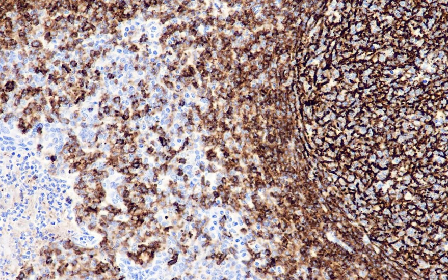 CD21 is a glycoprotein with a molecular weight of 140 kD, expressed on the membrane of sIg+ resting B cells in peripheral blood and normal lymphoid tissues, and is a receptor for EBV.It is not expressed by T lymphocytes, monocytes, or granulocytes. This antibody is primarily used to label B cells, follicular dendritic cells and tumors of their origin.